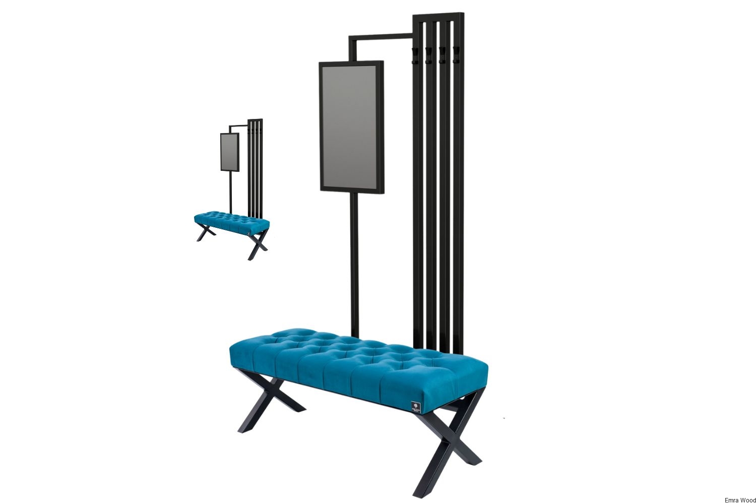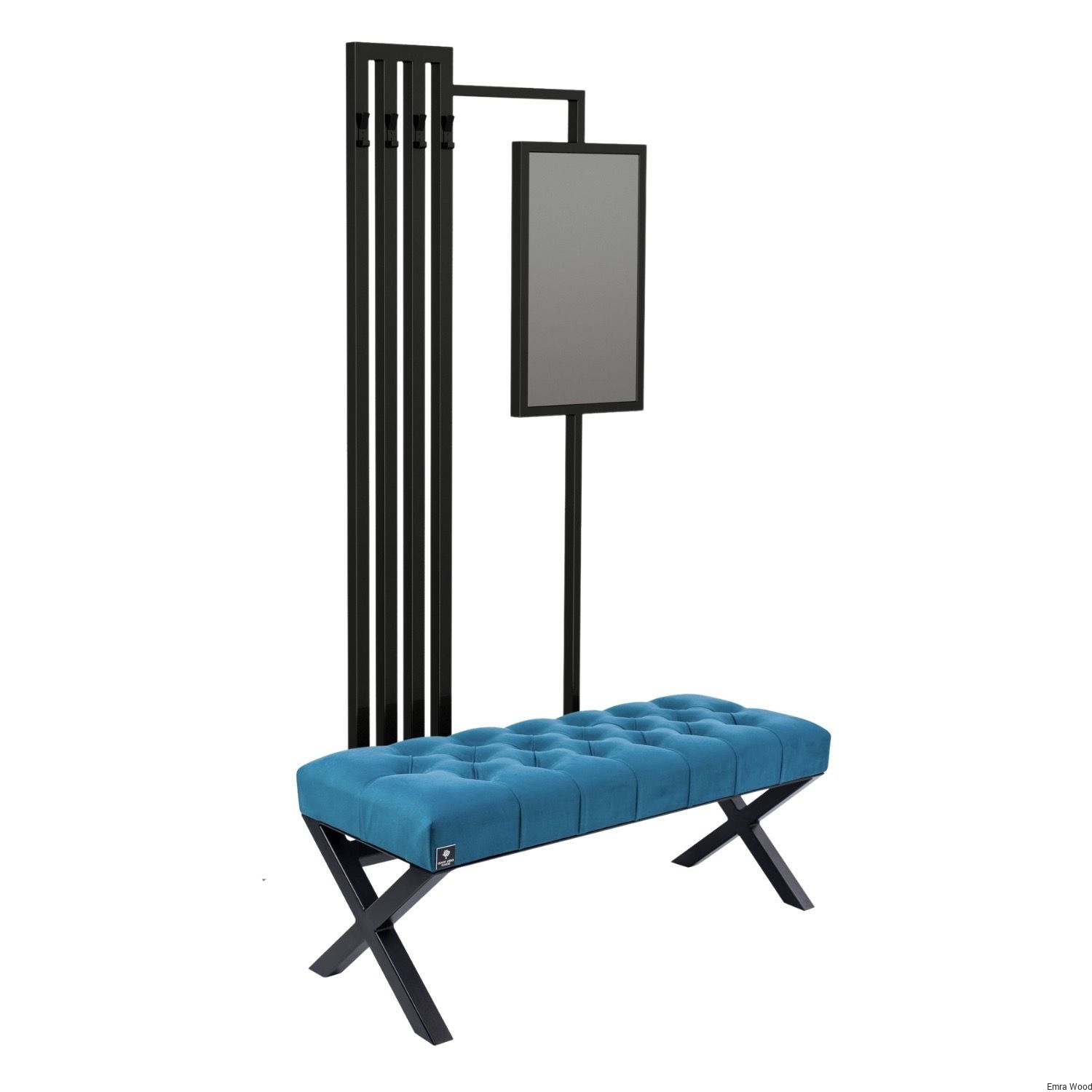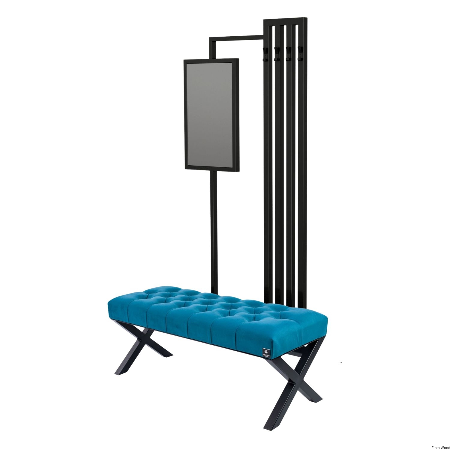ŁAWKA METALOWA TAPICEROWANA SIEDZISKO GŁADKIE Turkus tkanina Casablanca 2313 / Stelaż Stal Czarna Malowana Proszkowo / model LMW-27 produkowana w rozmiarach od 50 cm do 200 cm
