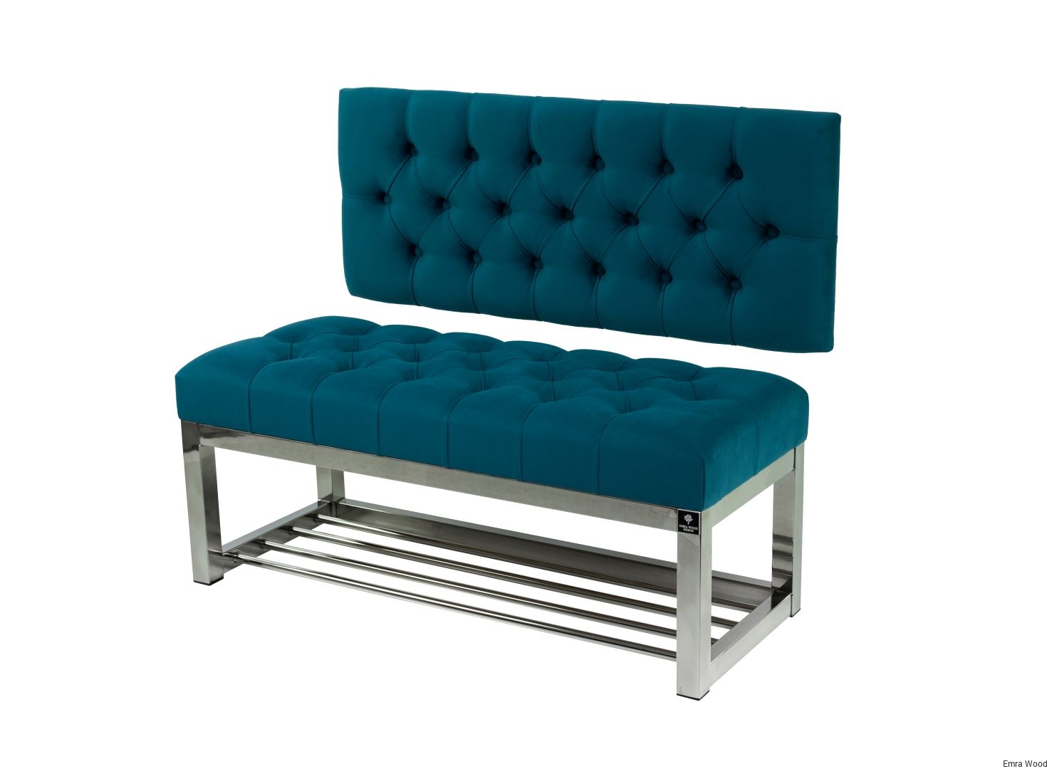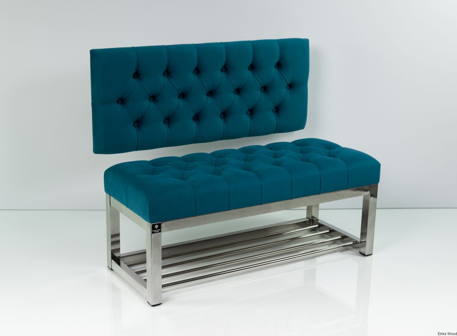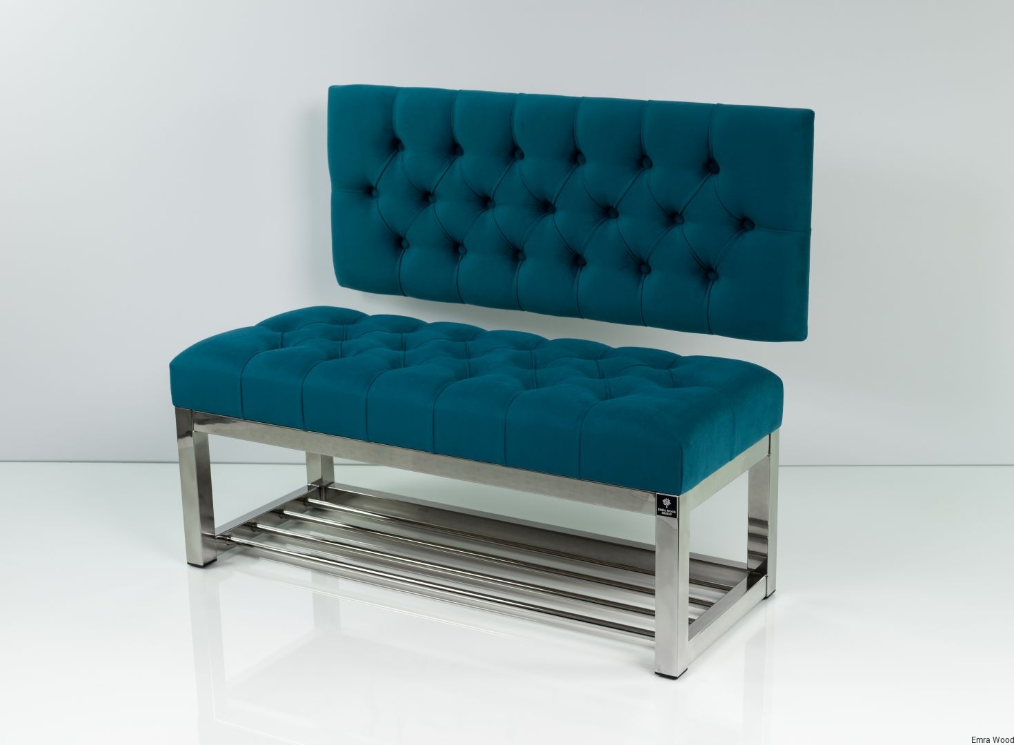 ŁAWKA METALOWA SIEDZISKO PIKOWANE Turkus Casablanca 2313 / Guziki Tapicerowany / Stelaż Stal Nierdzewna Polerowana / model LMO-1