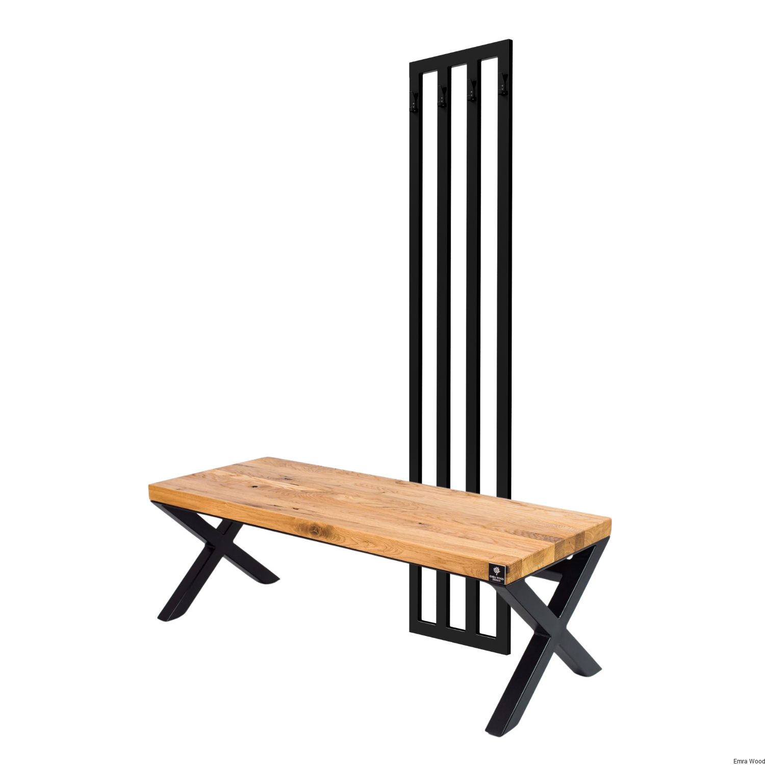 Ławka Metalowa Z Wieszakiem Loft Siedzisko Drewno Lite Dąb LM-86 Rozmiary od 50 cm do 200 cm