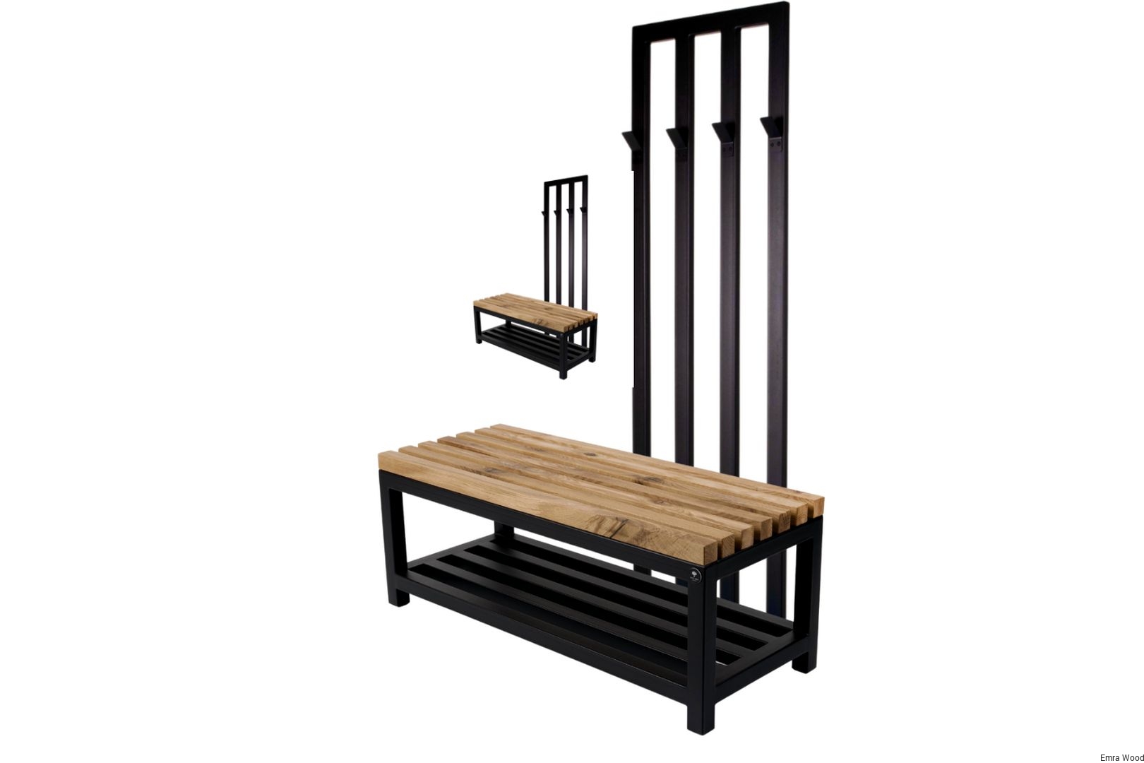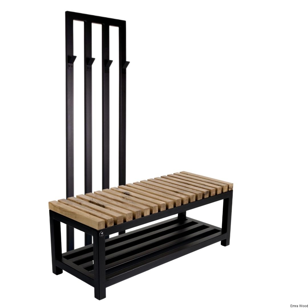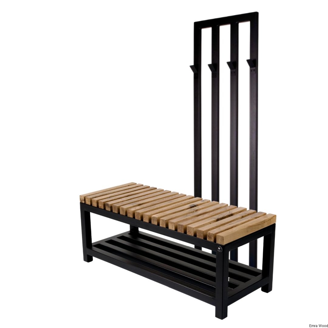 ŁAWKA METALOWA / Stelaż Stal Czarna Malowana Proszkowo / Siedzisko Drewno Lite Dąb / model LM-80 produkowana w rozmiarach od 50 cm do 200 cm