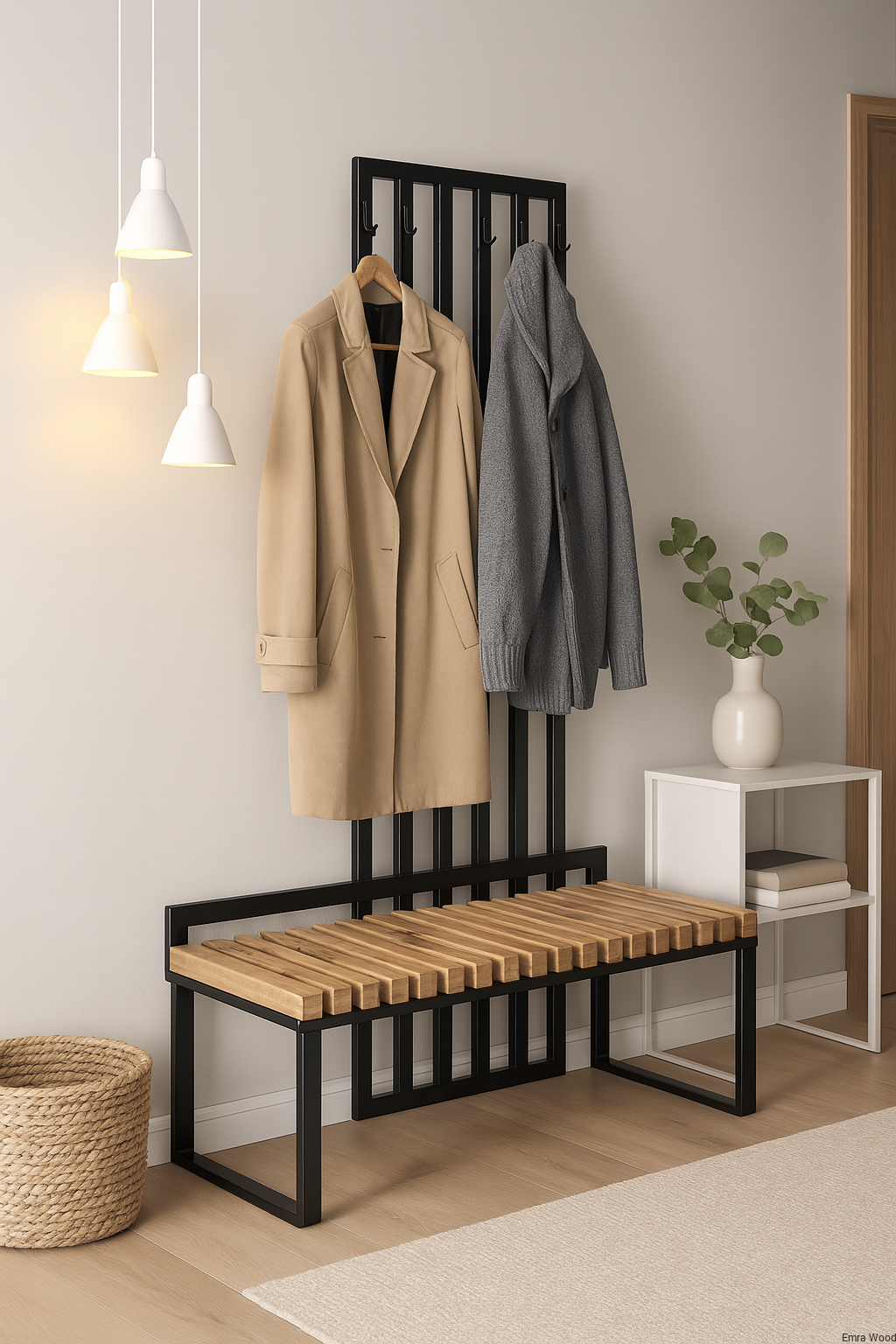 ŁAWKA METALOWA / Stelaż Stal Czarna Malowana Proszkowo / Siedzisko Drewno Lite Dąb / model LM-83 produkowana w rozmiarach od 50 cm do 200 cm