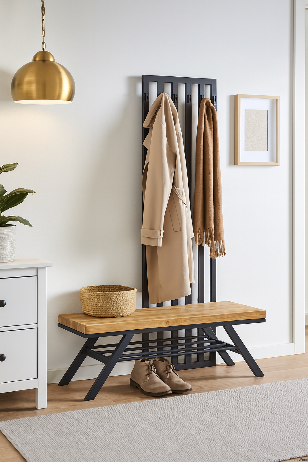 ŁAWKA METALOWA / Stelaż Stal Czarna Malowana Proszkowo / Siedzisko Drewno Lite Dąb / model LM-92 produkowana w rozmiarach od 50 cm do 200 cm