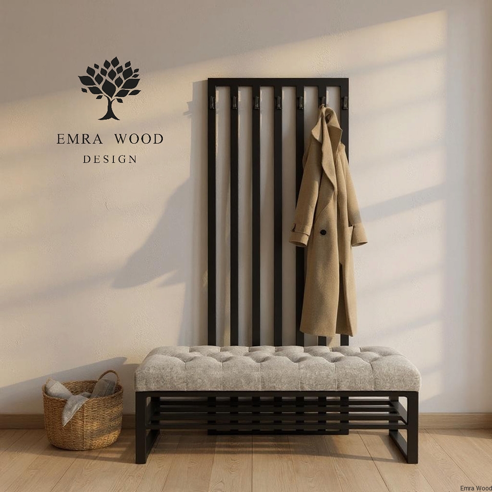 Ławka Z Wieszakiem Model LGM-566 / Tkanina Strong 14 / Stelaż Stal Czarna / Produkowana w rozmiarach od 50 cm do 200 cm