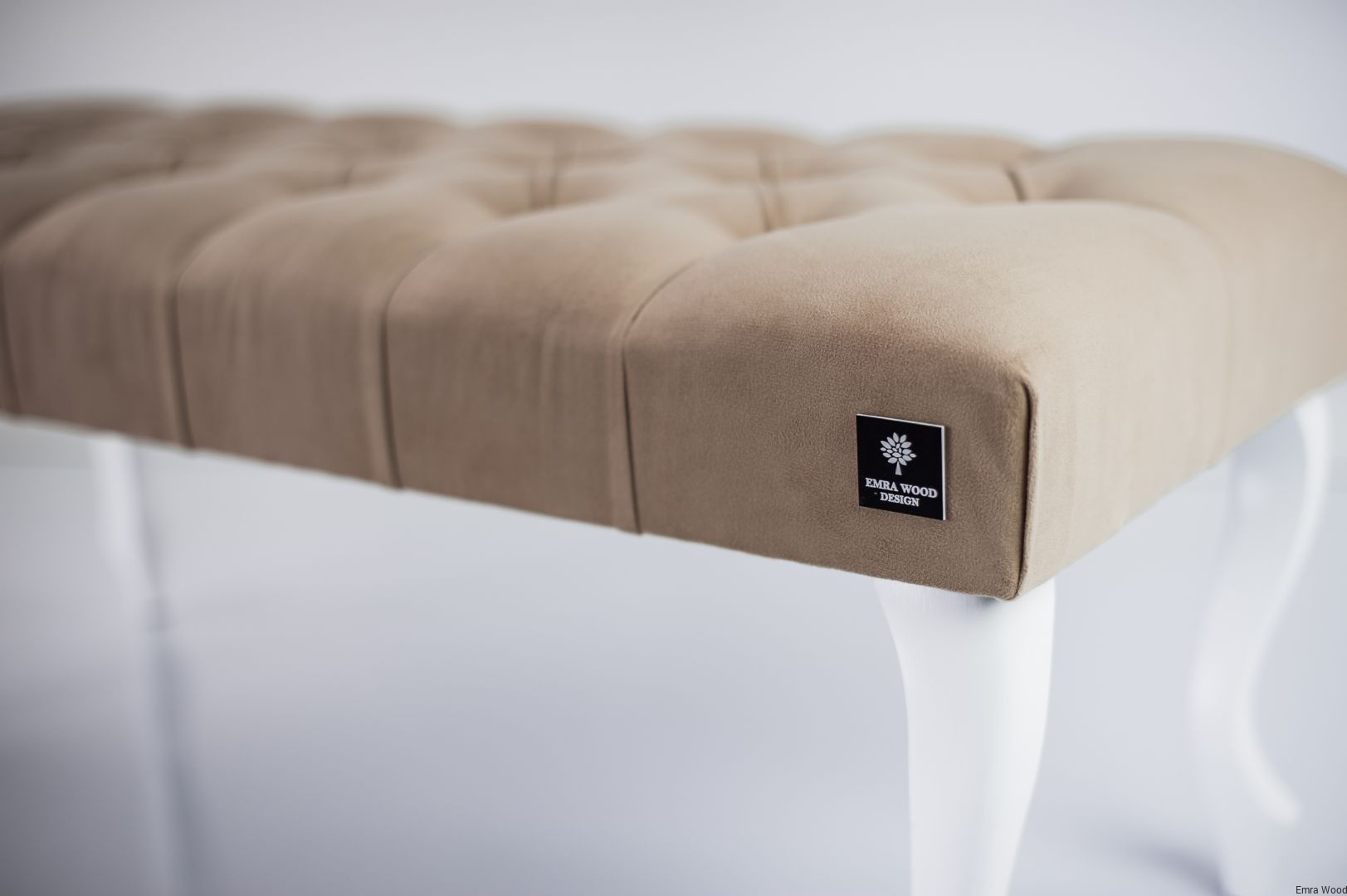 • Ławka posiada cztery białe nogi w stylu Ludwika XVI