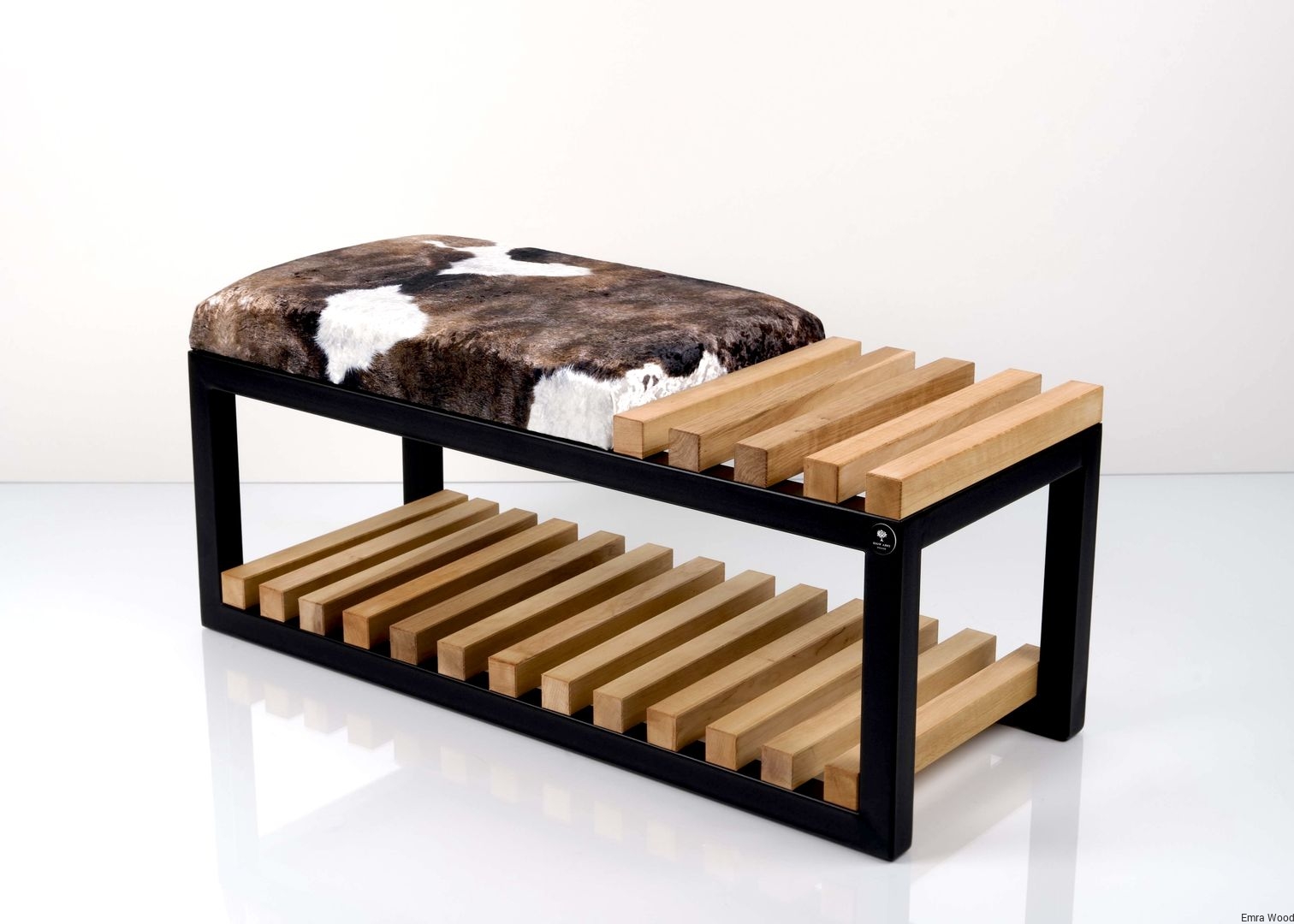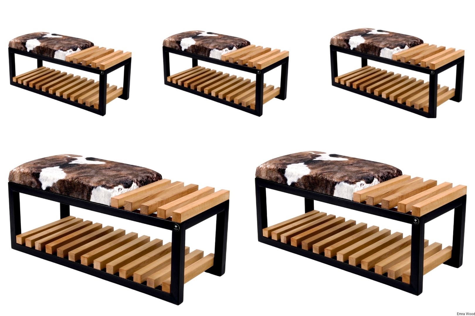 ŁAWKA METALOWA SIEDZISKO TAPICEROWANE Krowa 01 Crush Velvet / Drewno Lite Olcha / Stelaż Stal Czarna Malowana Proszkowo / model LPD-4 produkowana w rozmiarach od 50 cm do 200 cm.