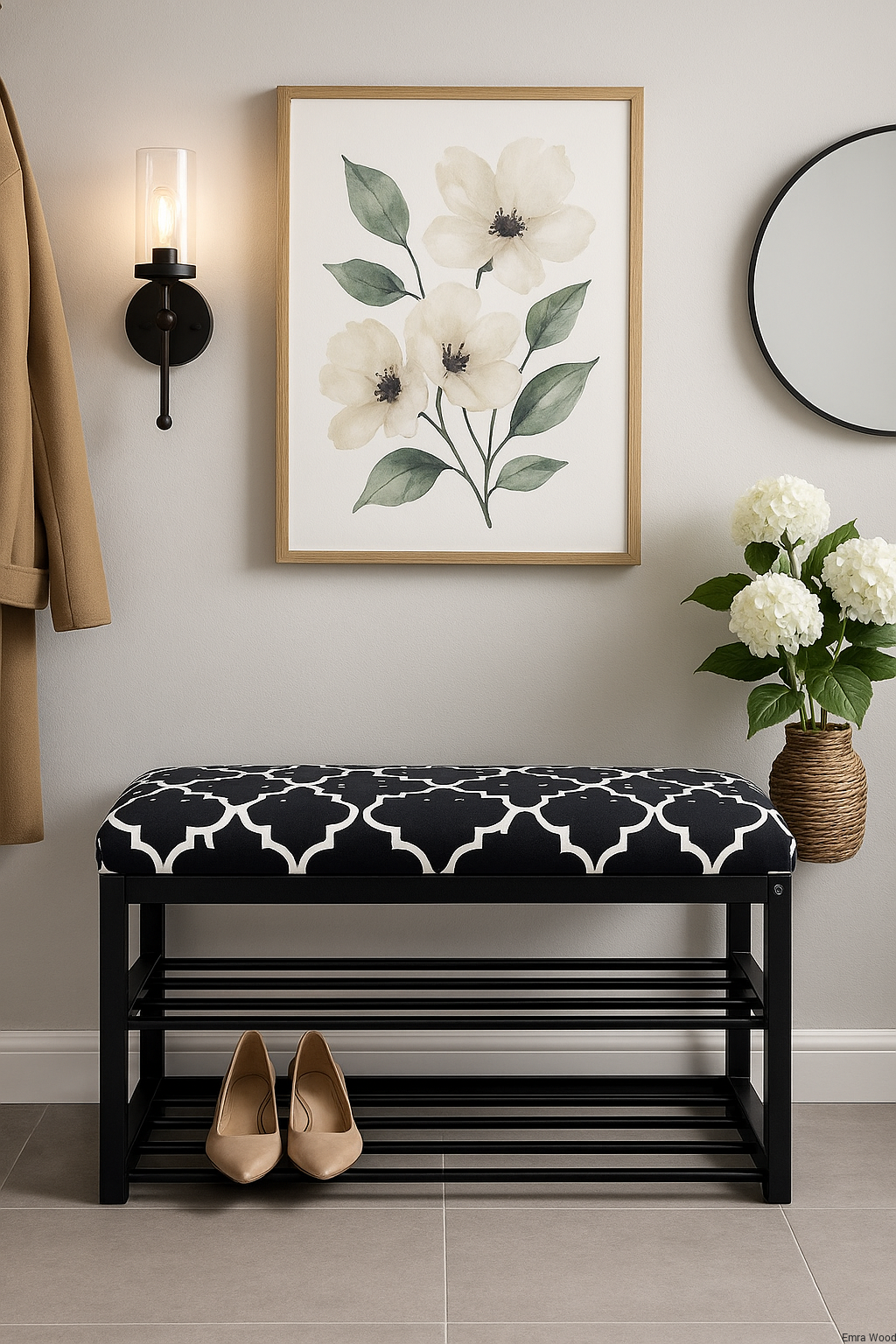 ŁAWKA METALOWA TAPICEROWANA SIEDZISKO GŁADKIE Arabeska Classic 01 / Stelaż Stal Czarny / model LGM-5 produkowana w rozmiarach od 50 cm do 200 cm