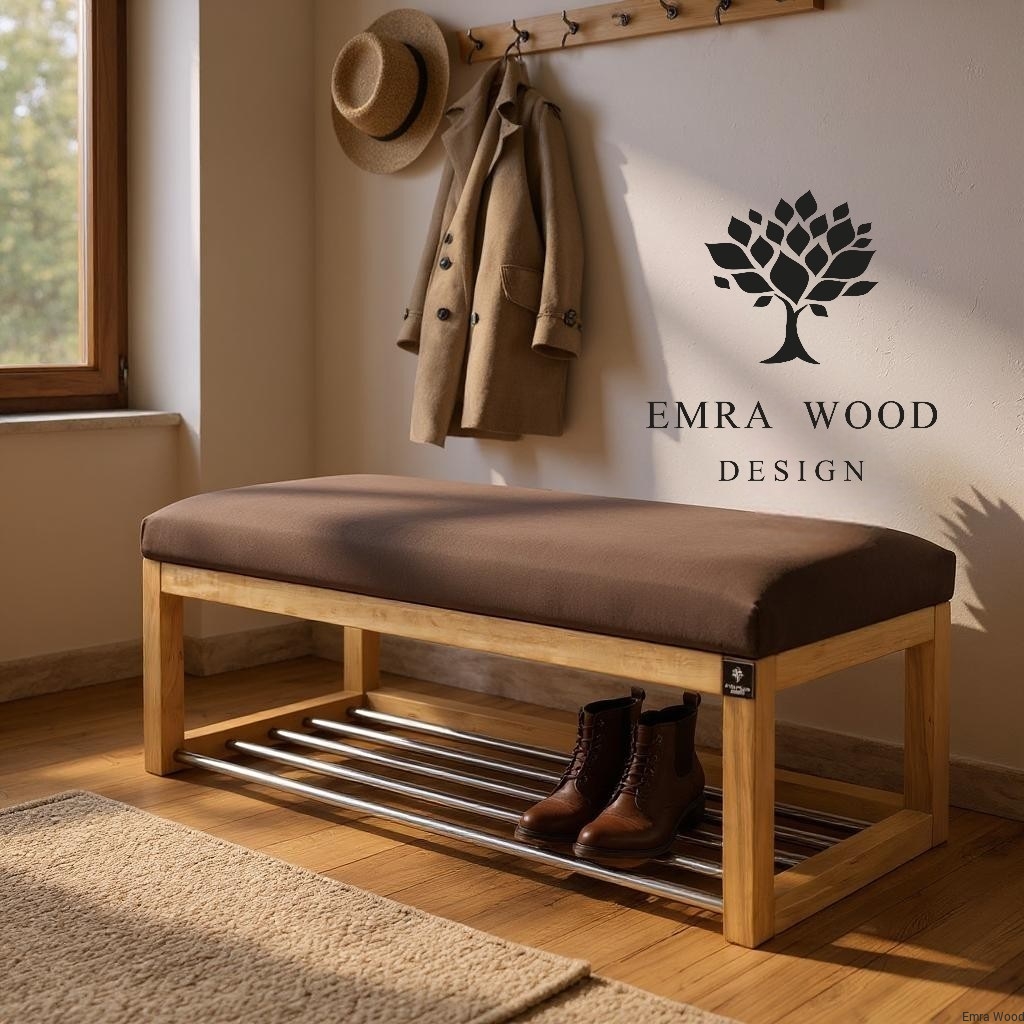 ŁAWECZKA TAPICEROWANA Z SIEDZISKIEM GŁADKIM Brąz Casablanca 2306 / Stelaż Naturalny model LPG-4