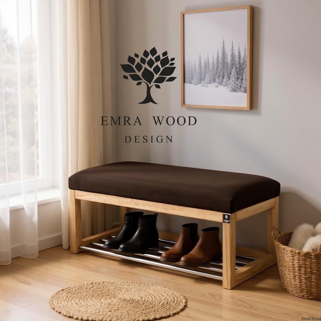 ŁAWECZKA TAPICEROWANA Z SIEDZISKIEM GŁADKIM Brąz Casablanca 2307 / Stelaż Naturalny model LPG-4
