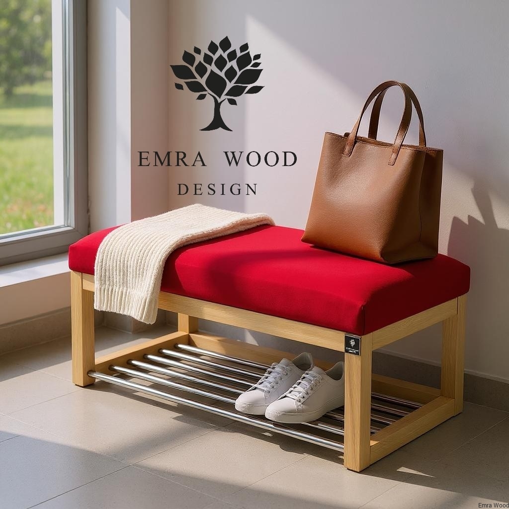 ŁAWECZKA TAPICEROWANA Z SIEDZISKIEM GŁADKIM Czerwona Casablanca 2309 / Stelaż Naturalny model LPG-4