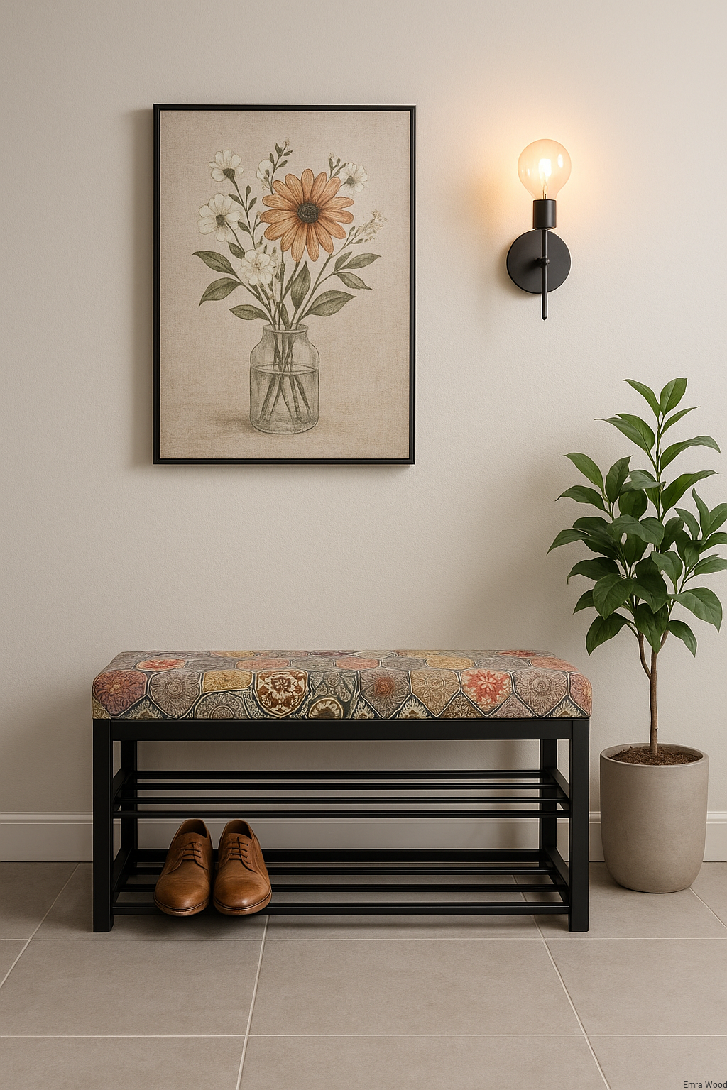 ŁAWKA METALOWA TAPICEROWANA SIEDZISKO GŁADKIE Hexagony Mandala / Stelaż Stal Czarny / model LGM-5 produkowana w rozmiarach od 50 cm do 200 cm