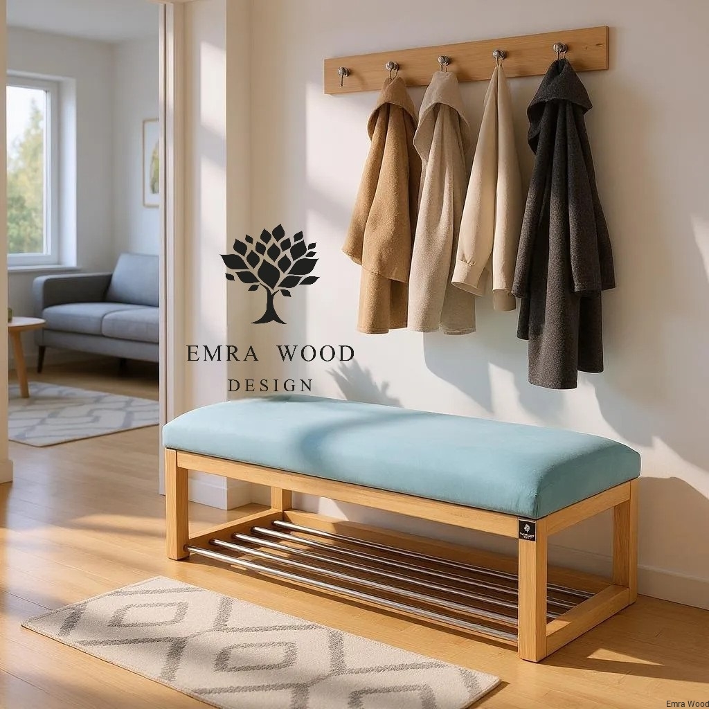 ŁAWECZKA TAPICEROWANA Z SIEDZISKIEM GŁADKIM Jasny Błękit Piano 11 / Stelaż Naturalny model LPG-4