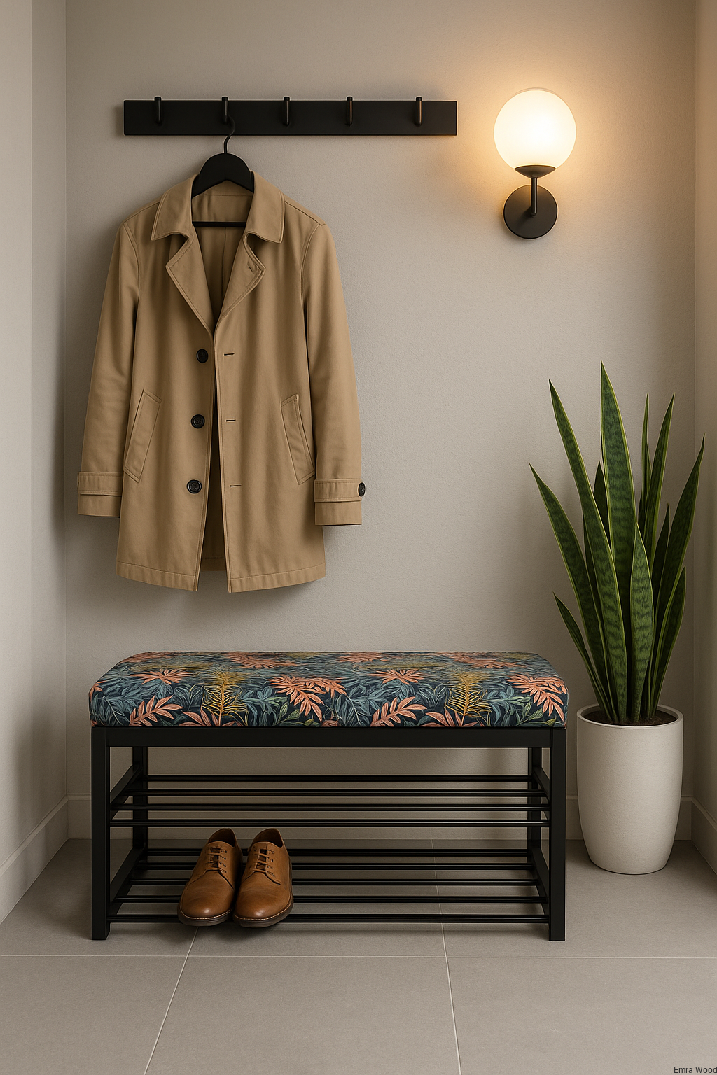 ŁAWKA METALOWA TAPICEROWANA SIEDZISKO GŁADKIE Kolorowe Liście / Stelaż Stal Czarny / model LGM-5 produkowana w rozmiarach od 50 cm do 200 cm