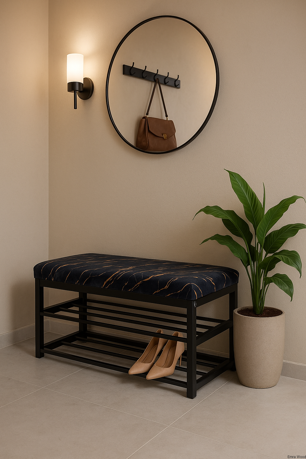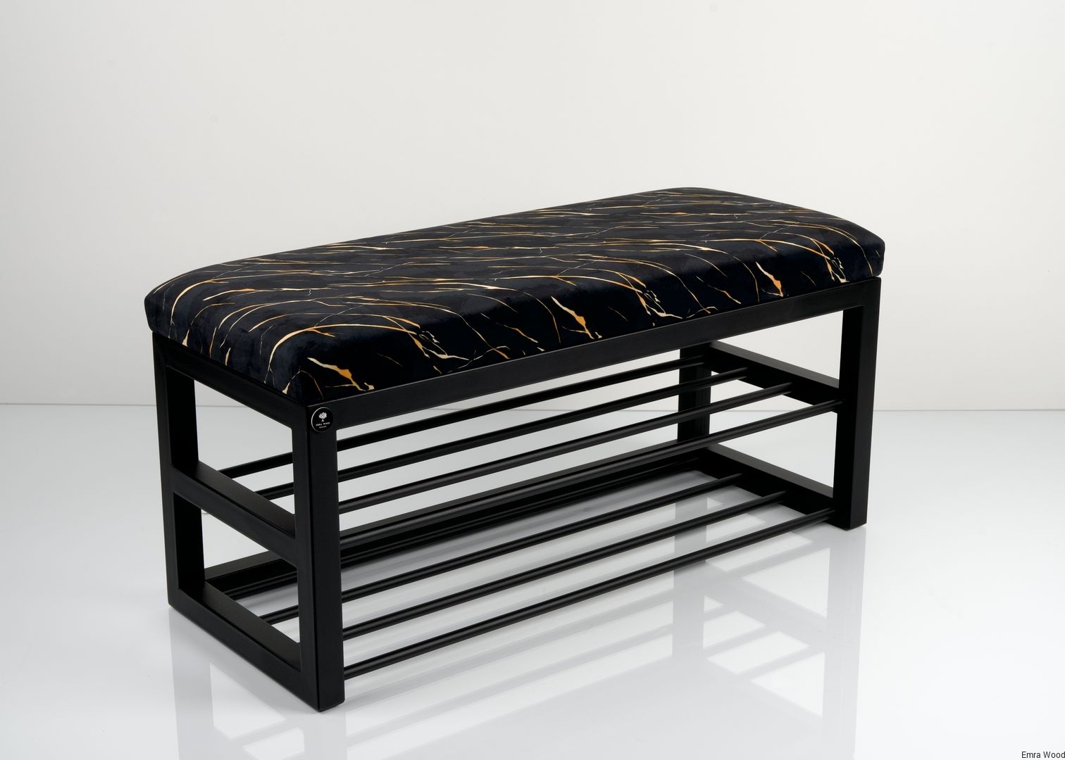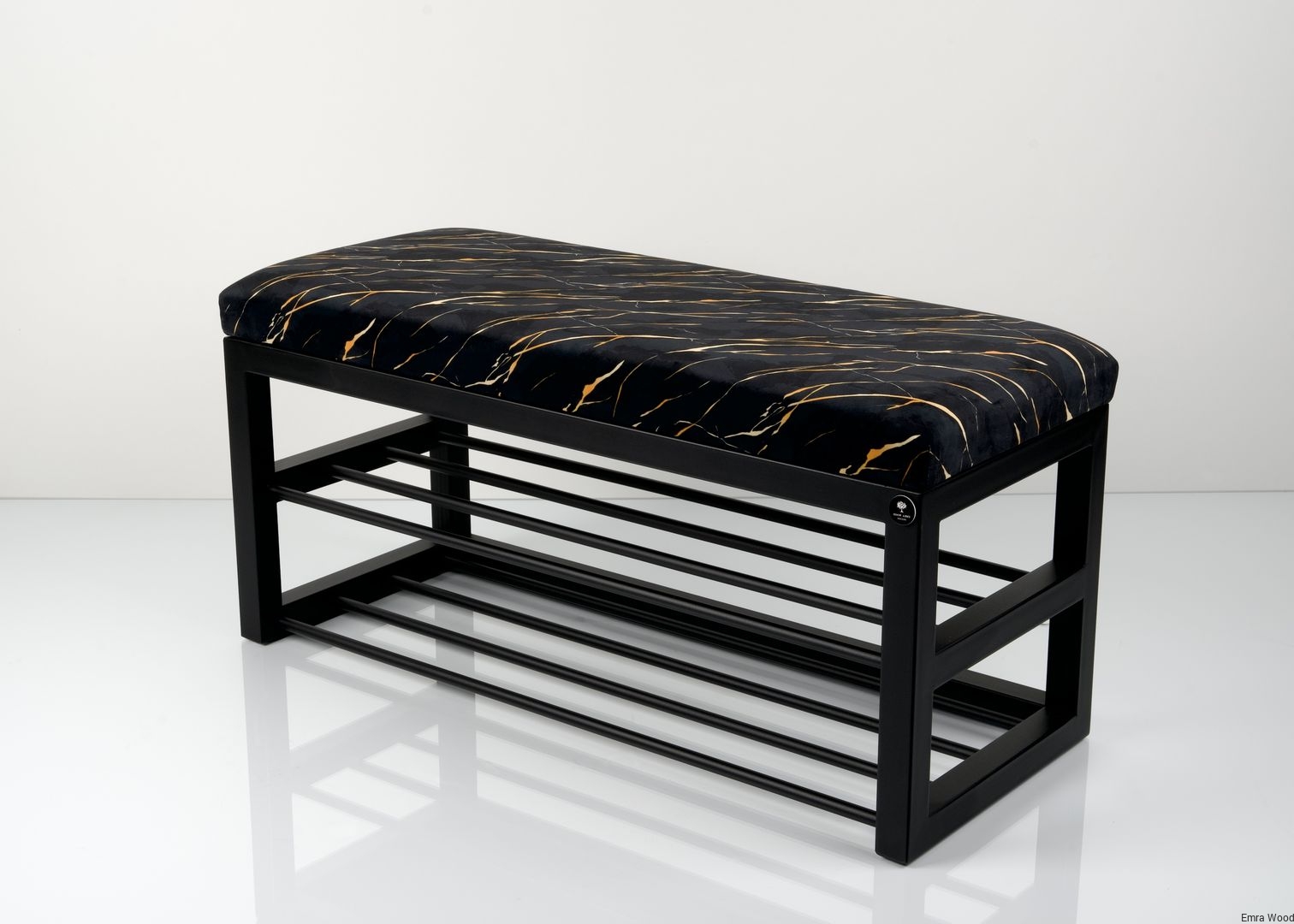 ŁAWKA METALOWA TAPICEROWANA SIEDZISKO GŁADKIE Marmur 02 / Stelaż Stal Czarny / model LGM-5 produkowana w rozmiarach od 50 cm do 200 cm