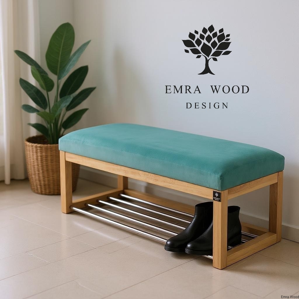 ŁAWECZKA TAPICEROWANA Z SIEDZISKIEM GŁADKIM Mięta Piano 09 / Stelaż Naturalny model LPG-4