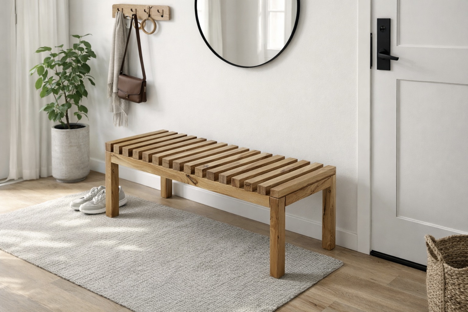 ŁAWKA Na Buty Drewno Lite Dąb Loft / Stelaż Naturalny model LB-76 produkowana w rozmiarach od 50 cm do 160 cm