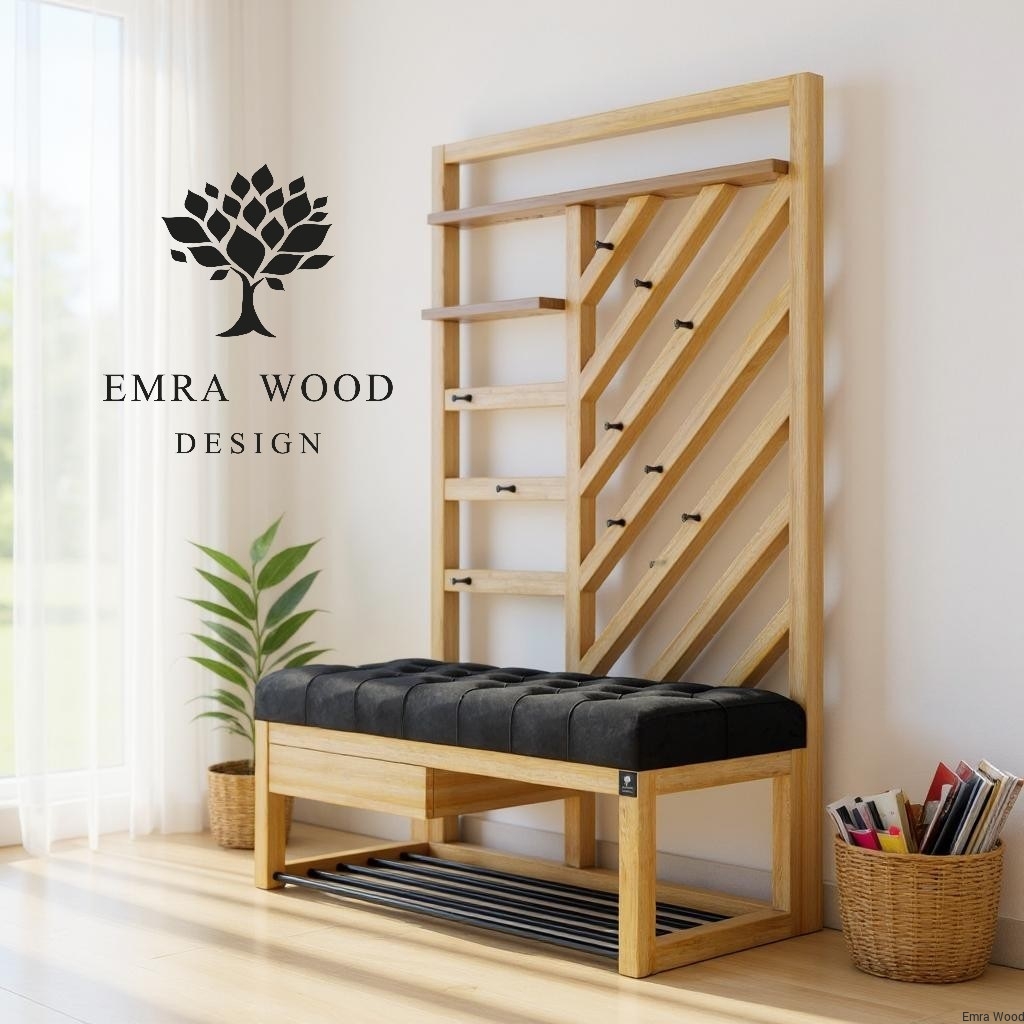 ŁAWKA Z SIEDZISKIEM PIKOWANYM Czarny Casablanca 2316 / Guzik Tapicerowany w Kolorze Tkaniny / Stelaż Naturalny model LPP-123