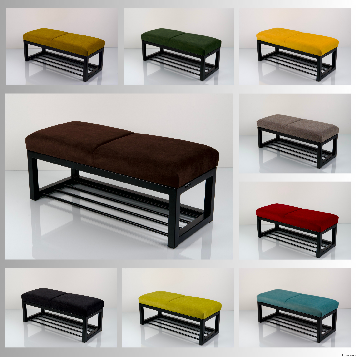 Ławka Tapicerowana Industrialna  / Stelaż Stal Czarna / Model LGM-513 produkowana w rozmiarach od 45 cm do 200 cm