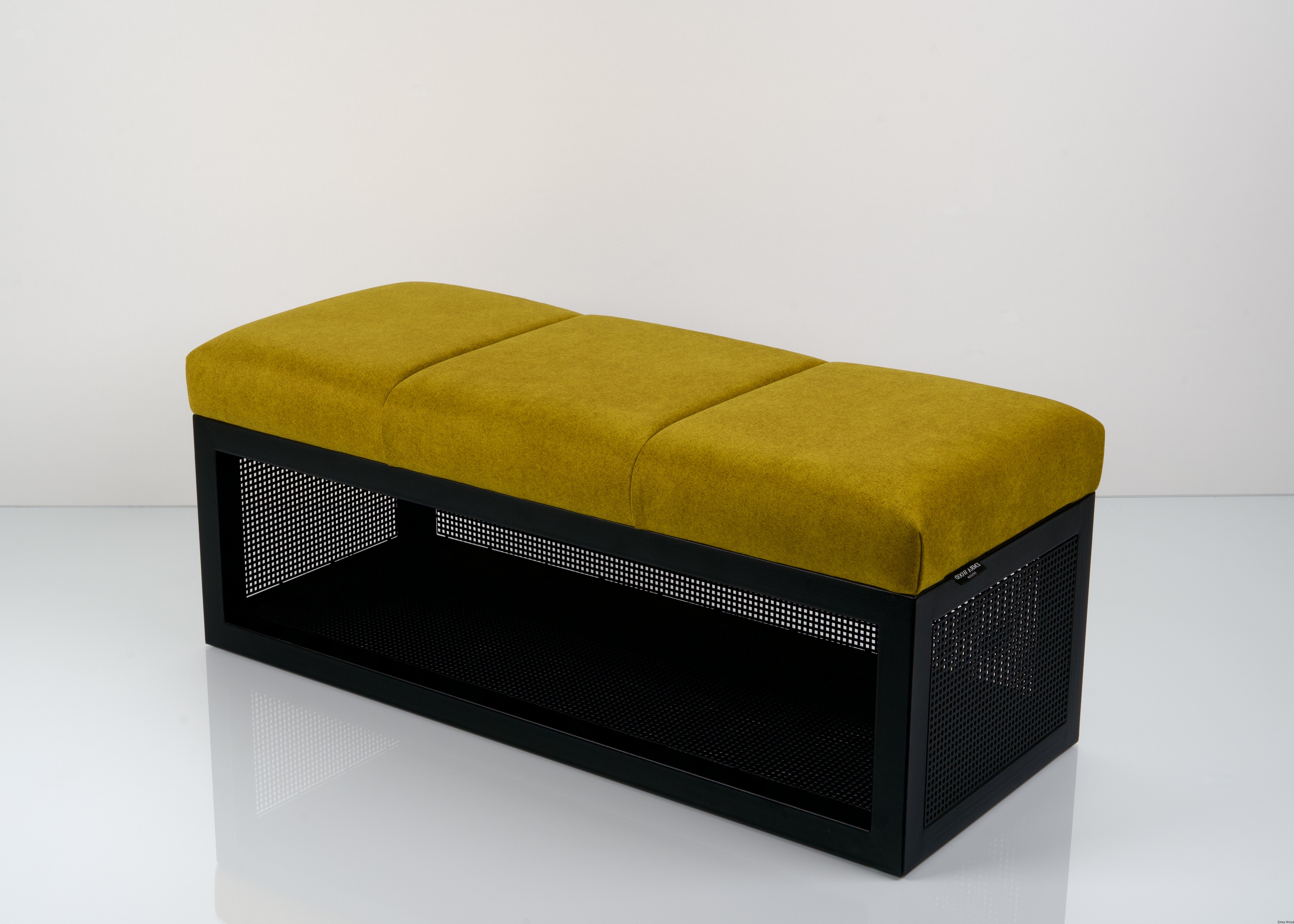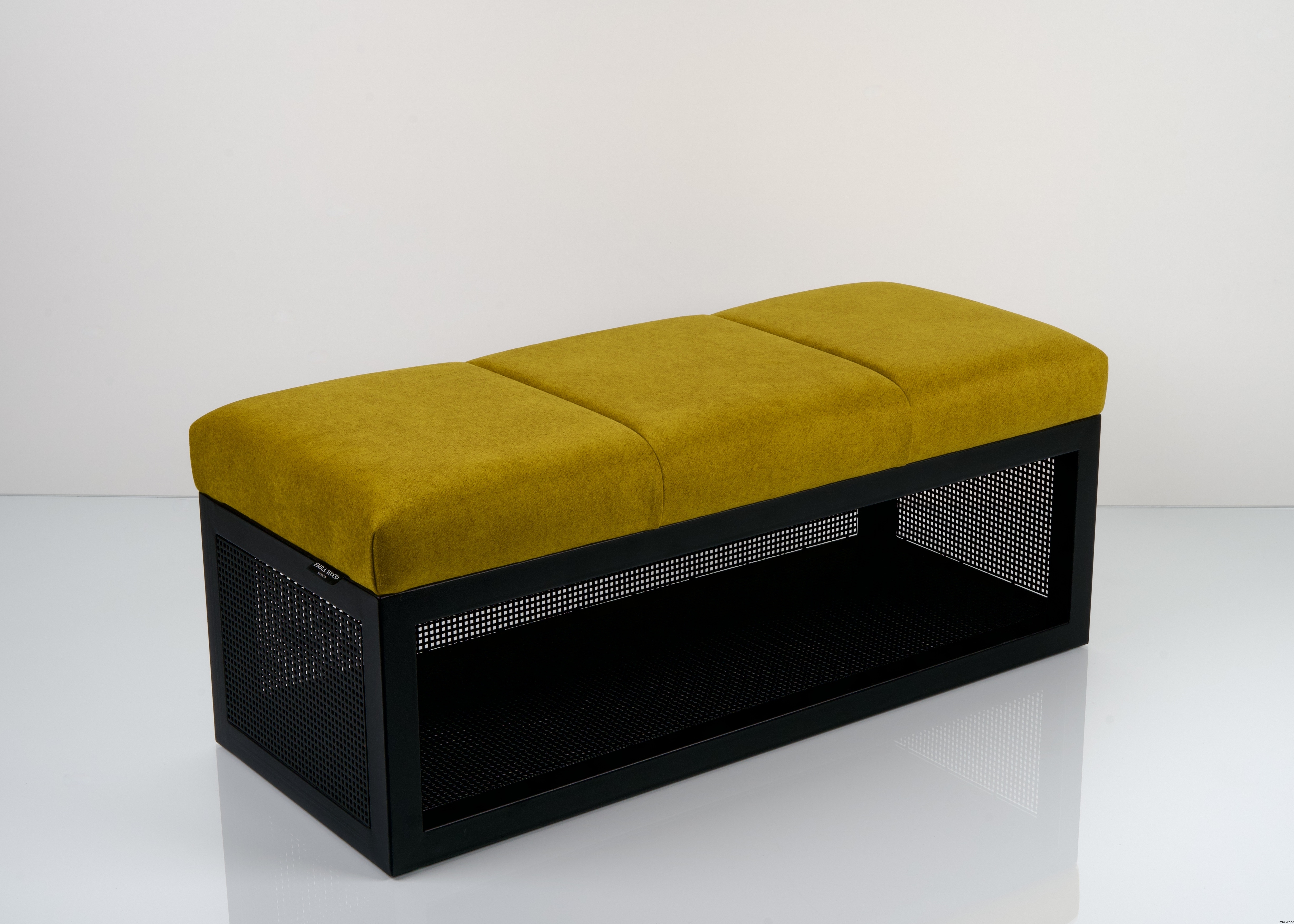 Ławka Tapicerowana Industrialna  / Stelaż Stal Czarna / Model LGM-506 produkowana w rozmiarach od 45 cm do 200 cm
