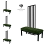 Zestaw mebli do przedpokoju w stylu Loft - nowoczesne i oryginalne rozwiązanie dla osób, które chcą stworzyć wyjątkową aranżację swojego wnętrza. Metalowy stelaż i tapicerowane wysokiej jakości siedzisko podkreśla industrialny charakter i zachwyca prostą formą. Trwały i solidny stelaż metalowej ramy, malowany proszkowo w kolorze czarny mat. Rama posiada wieszaki ścienne. Dostępne są w czterech opcjach do wyboru.