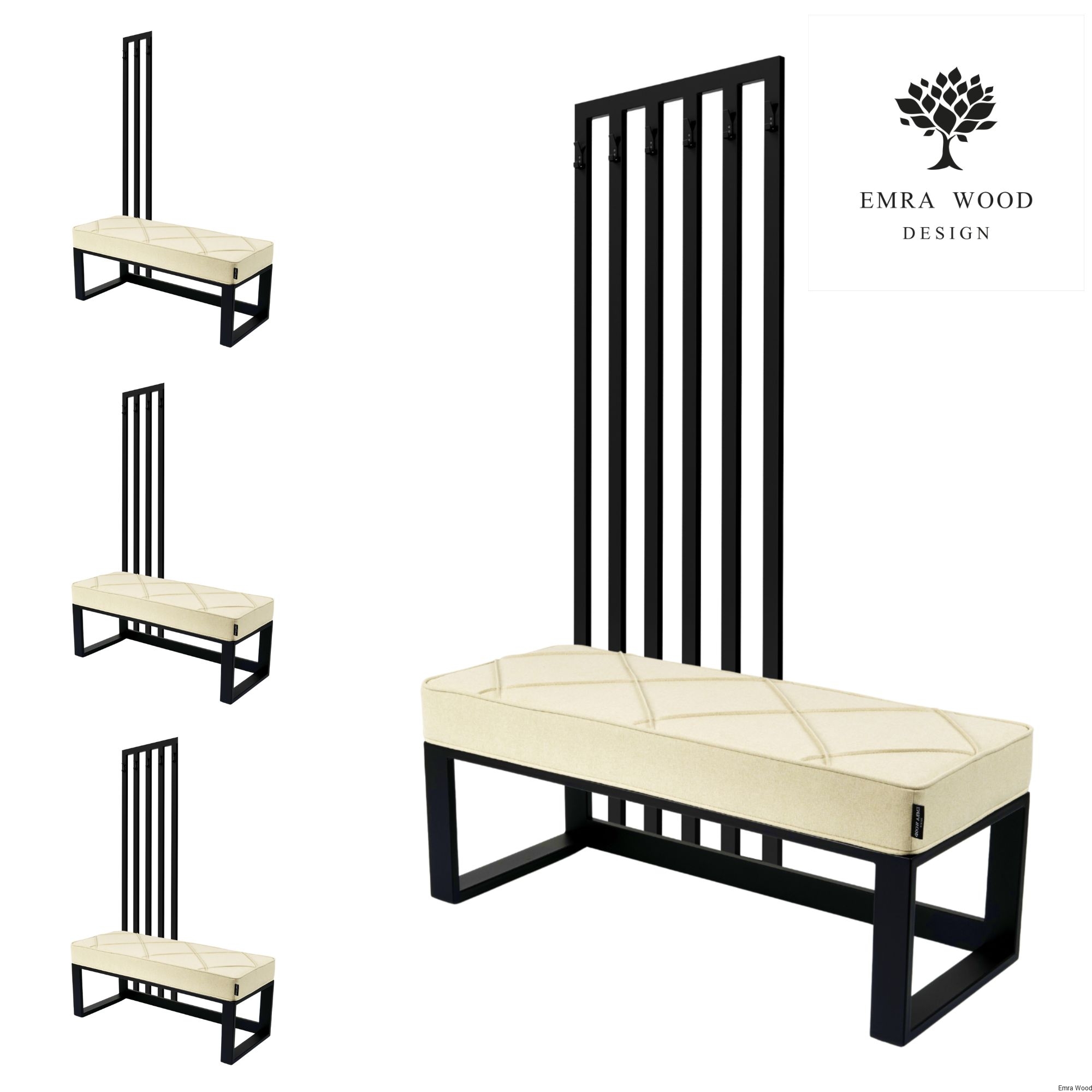 Ławka Z Wieszakiem Model LGM-373 / Tkanina Hamilton 2802 / Stelaż Stal Czarna / Produkowana w rozmiarach od 50 cm do 200 cm