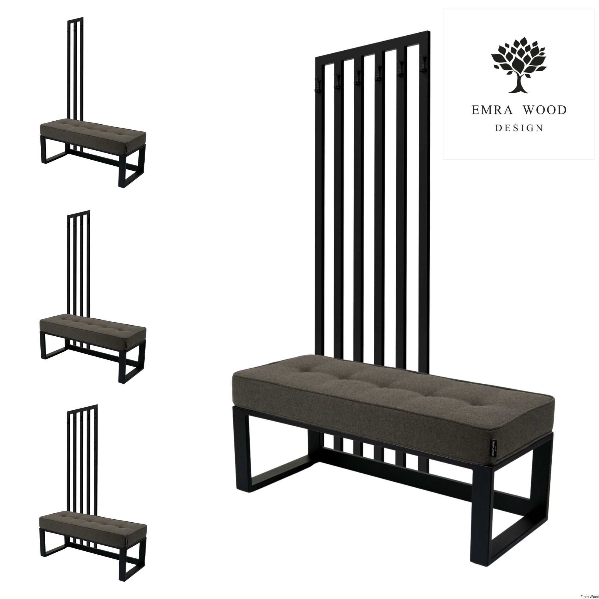 Ławka Z Wieszakiem Model LGM-376 / Tkanina Hamilton 2818 / Stelaż Stal Czarna / Produkowana w rozmiarach od 50 cm do 200 cm