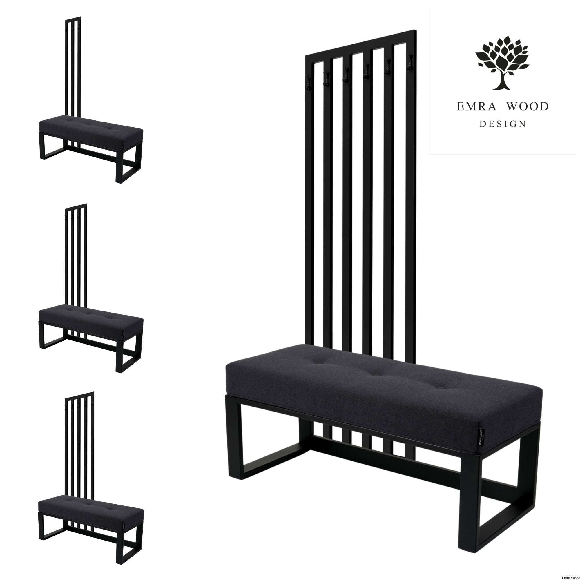 Ławka Z Wieszakiem Model LGM-379 / Tkanina Hamilton 2817 / Stelaż Stal Czarna / Produkowana w rozmiarach od 50 cm do 200 cm