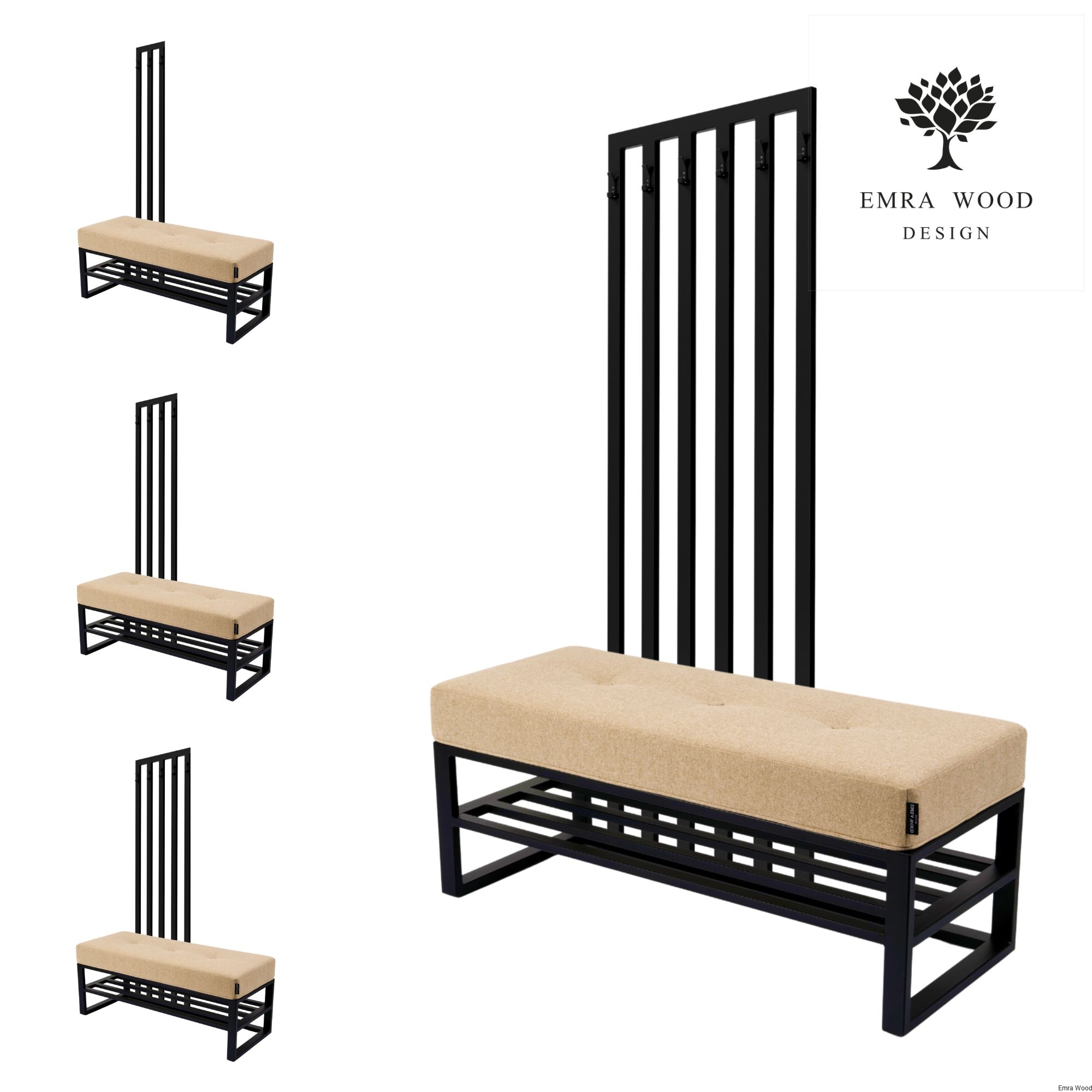 Ławka Z Wieszakiem Model LGM-381 / Tkanina Hamilton 2809 / Stelaż Stal Czarna / Produkowana w rozmiarach od 50 cm do 200 cm