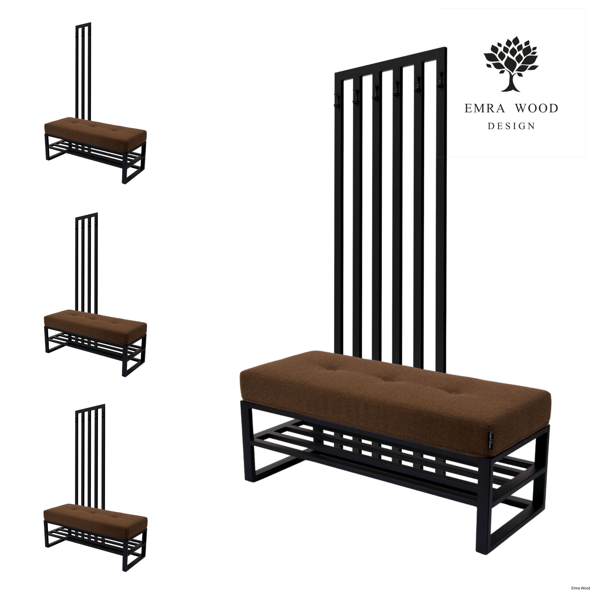Ławka Z Wieszakiem Model LGM-381 / Tkanina Hamilton 2812 / Stelaż Stal Czarna / Produkowana w rozmiarach od 50 cm do 200 cm