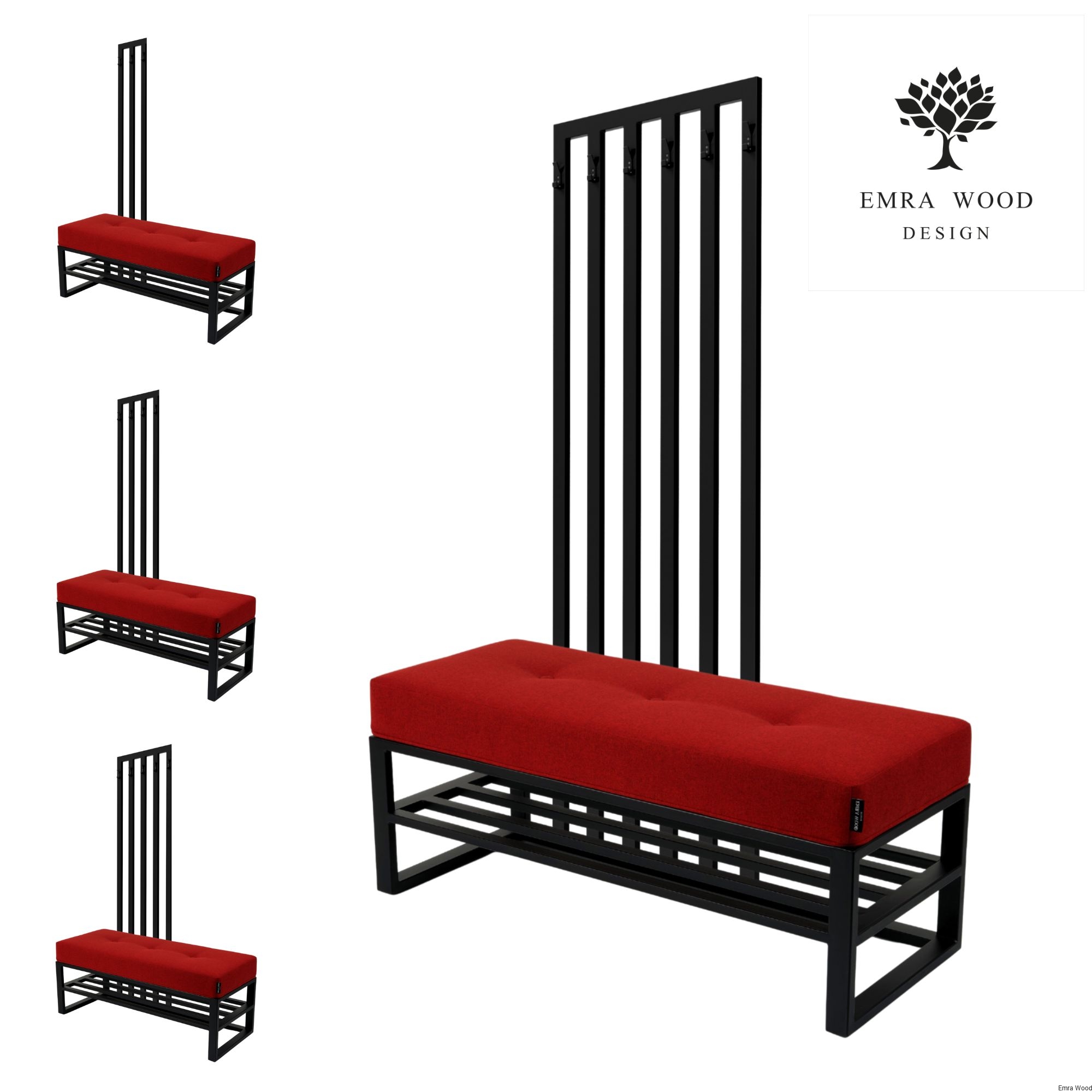 Zestaw mebli do przedpokoju w stylu Loft - nowoczesne i oryginalne rozwiązanie dla osób, które chcą stworzyć wyjątkową aranżację swojego wnętrza. Metalowy stelaż i tapicerowane wysokiej jakości siedzisko podkreśla industrialny charakter i zachwyca prostą formą. Trwały i solidny stelaż metalowej ramy, malowany proszkowo w kolorze czarny mat. Rama posiada wieszaki ścienne. Dostępne są w czterech opcjach do wyboru.