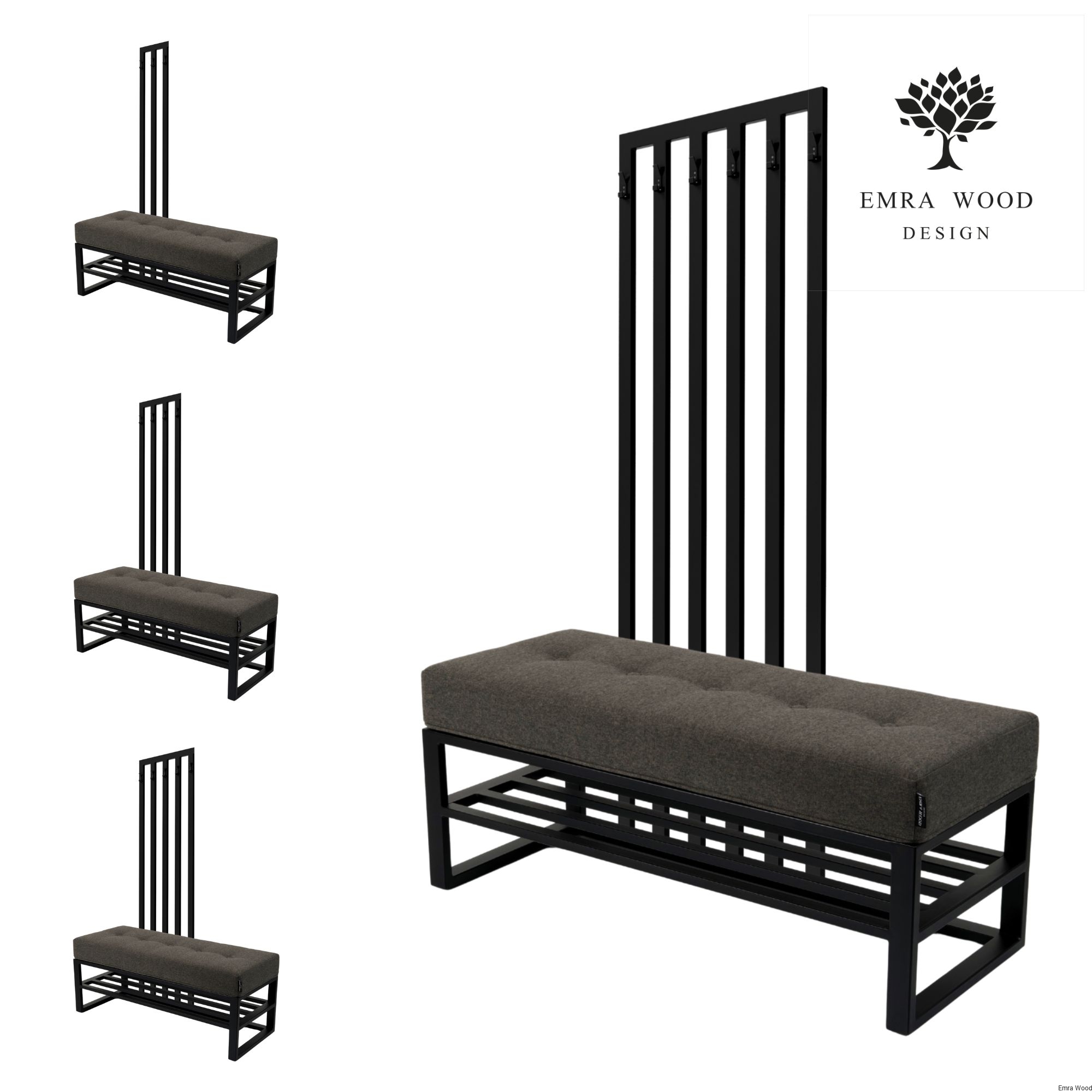 Ławka Z Wieszakiem Model LGM-390 / Tkanina Hamilton 2818 / Stelaż Stal Czarna / Produkowana w rozmiarach od 50 cm do 200 cm