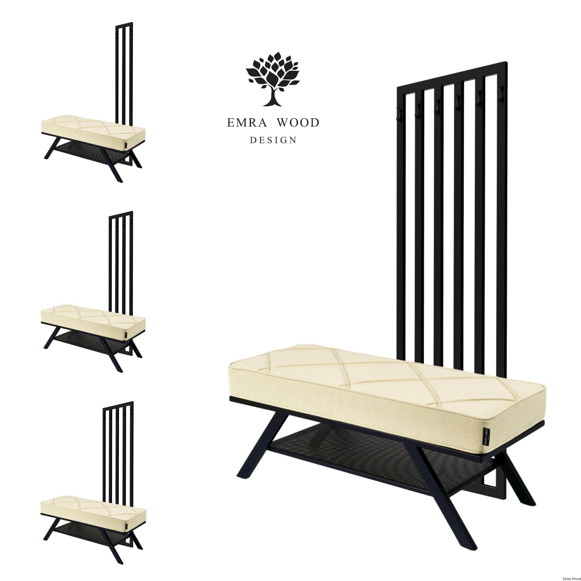 Ławka Z Wieszakiem Model LGM-391 / Tkanina Hamilton 2802 / Stelaż Stal Czarna / Produkowana w rozmiarach od 50 cm do 200 cm