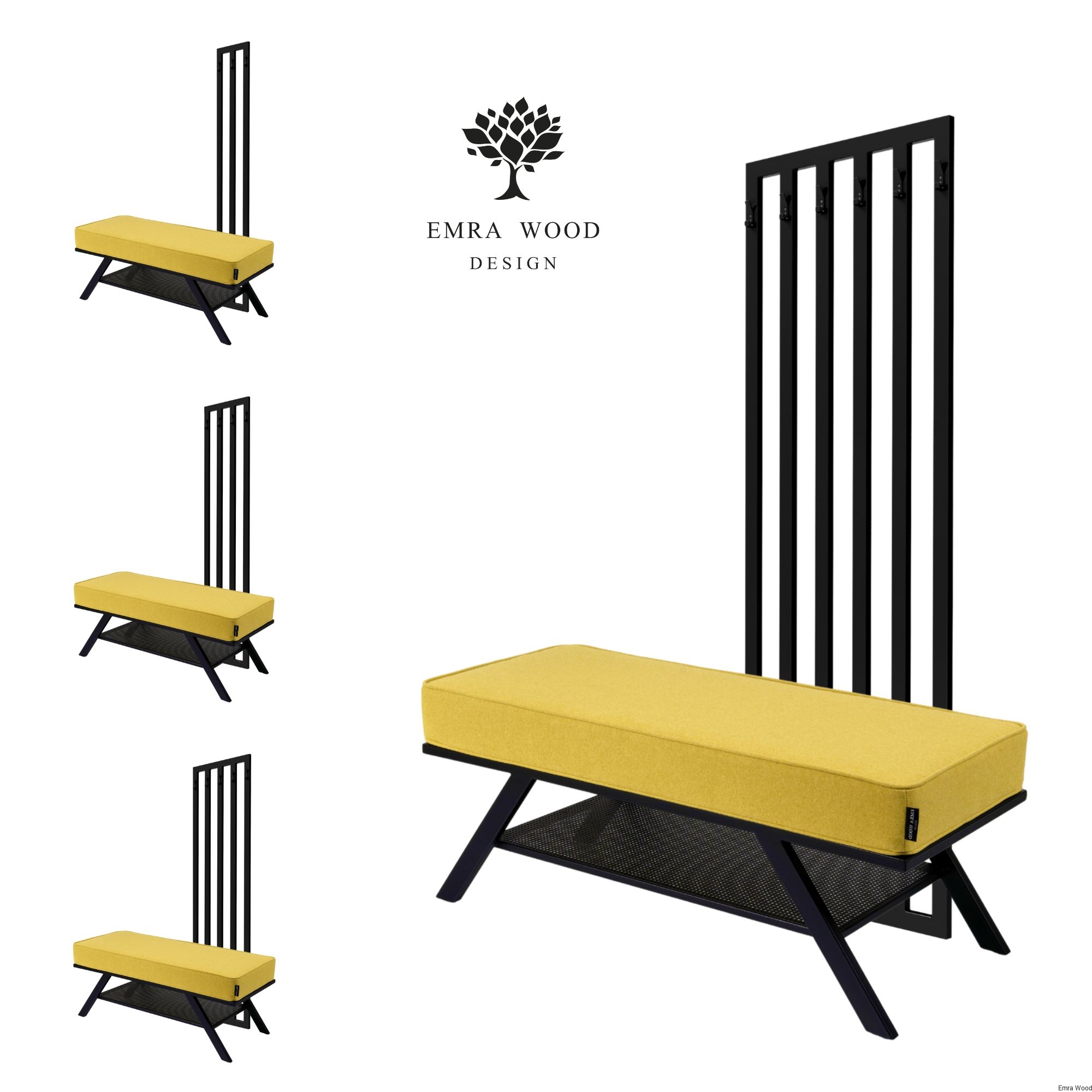 Zestaw mebli do przedpokoju w stylu Loft - nowoczesne i oryginalne rozwiązanie dla osób, które chcą stworzyć wyjątkową aranżację swojego wnętrza. Metalowy stelaż i tapicerowane wysokiej jakości siedzisko podkreśla industrialny charakter i zachwyca prostą formą. Trwały i solidny stelaż metalowej ramy, malowany proszkowo w kolorze czarny mat. Rama posiada wieszaki ścienne. Dostępne są w czterech opcjach do wyboru.