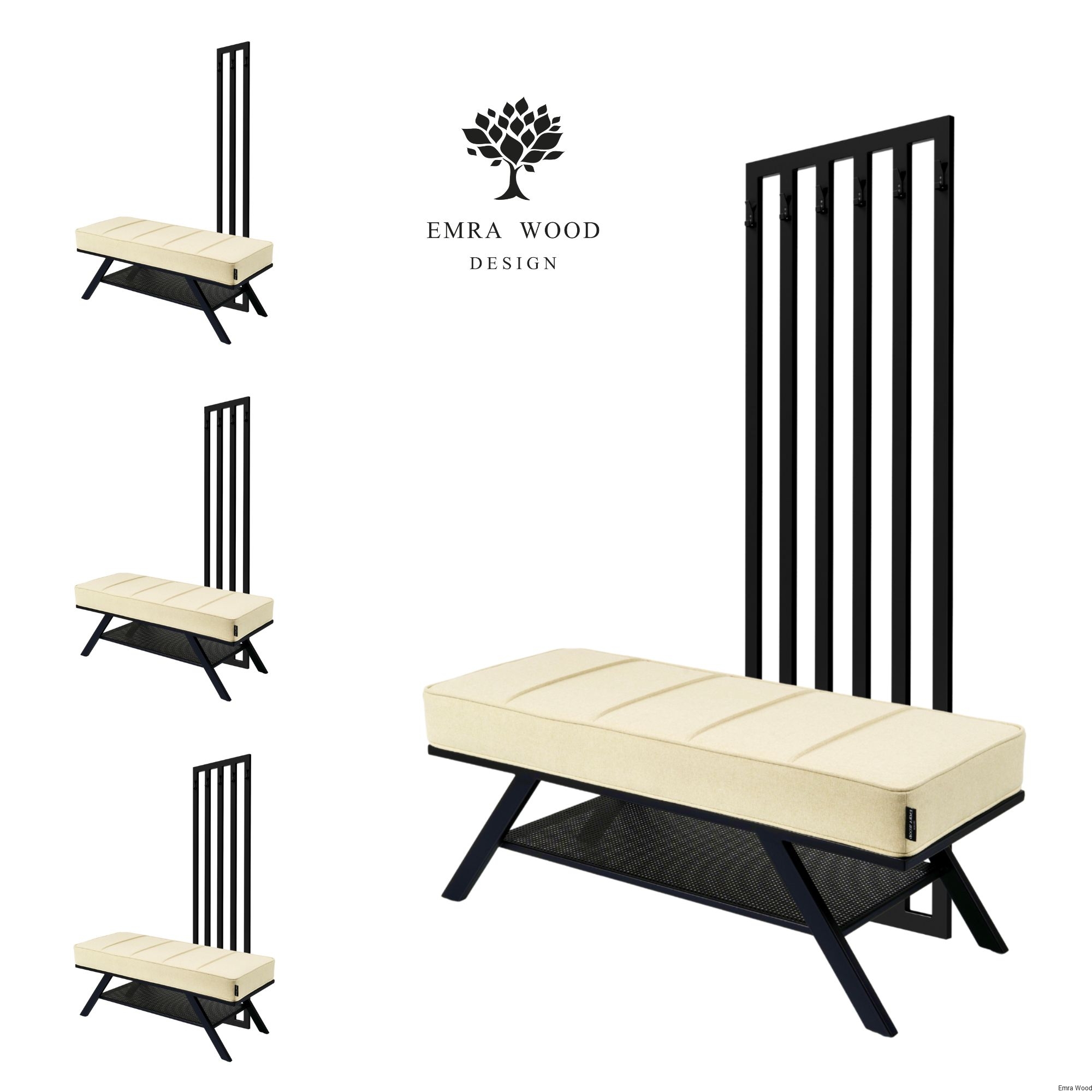 Ławka Z Wieszakiem Model LGM-398 / Tkanina Hamilton 2802 / Stelaż Stal Czarna / Produkowana w rozmiarach od 50 cm do 200 cm