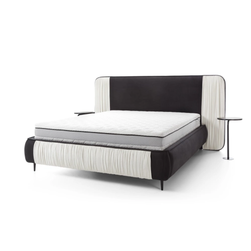 Łóżko Chiaro zdobyło prestiżową nagrodę "Diament Meblarstwa 2024" dzięki harmonii, spokojowi i unikatowemu stylowi, który hołduje pięknu natury. Minimalistyczne wezgłowie nadaje elegancji, a proste, pionowe linie podkreślają nowoczesność konstrukcji. Inspirację czerpano z kształtu blaszek grzybów, co przejawia się w ozdobnych marszczeniach tkaniny na wezgłowiu i frontowej płozie. Kolorystyka projektu tworzy trójwymiarowy efekt, dostosowując się do gry świateł i cieni. Funkcjonalność została zintegrowana z estetyką poprzez dodanie prostych, czarnych stolików nocnych przymocowanych do wezgłowia, co nie tylko jest praktyczne, ale także dodaje oryginalności, tworząc przestrzeń do eksponowania drobnych przedmiotów lub umieszczania lampek nocnych.