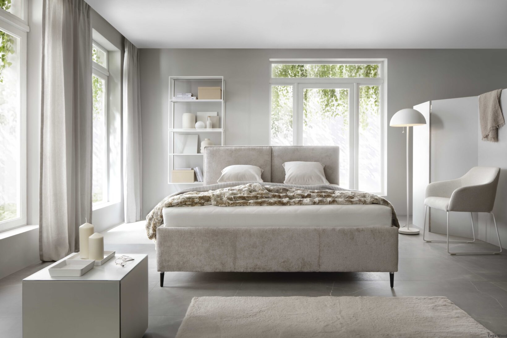 ŁÓŻKO TAPICEROWANE NA NÓŻKACH Z POJEMNIKIEM NA POŚCIEL SENtique 180x200