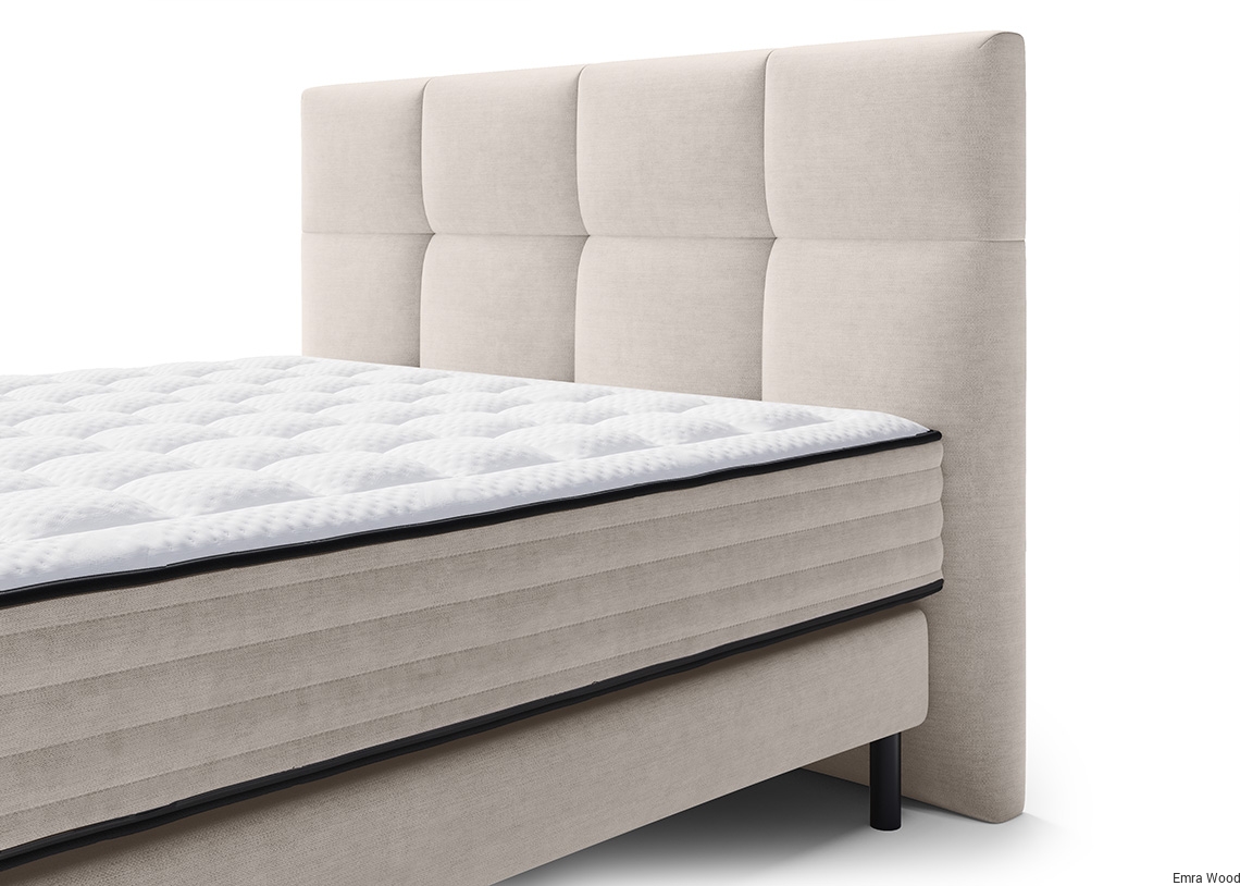 Łóżko kontynentalne Atlanta to majestatyczne wezgłowie, które w połączeniu z eleganckim charakterem i lekką bryłą sprawiają, że w sypialni można poczuć się jak w apartamencie luksusowego kurortu. Konstrukcję Atlanty tworzy pół-twardy box z dodatkiem pianki poliuretanowej jako podstawa, a powyżej umieszczony jest materac z dwupoziomowym układem sprężyn – kieszeniowych oraz bonellowych. Dodatkowo, materac zawiera warstwy pianki antybakteryjnej oraz pianki wysokoelastycznej, co gwarantuje sprężystość progresywną. Wysokiej jakości komponenty wspierają zdrowie pleców, skóry, układu oddechowego i odpornościowego użytkownika. Atlantę wyróżniają także detale, takie jak głębokie przeszycia na wezgłowiu oraz gustowny haft na pokrowcu materaca właściwego. Smukłe nóżki nadają lekkości całej konstrukcji łóżka kontynentalnego.