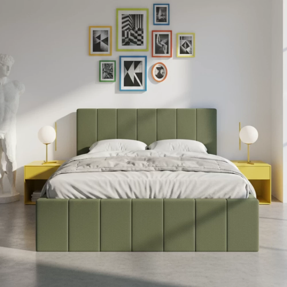 Łóżko tapicerowane z dużym pojemnikiem na pościel carakteryzuje się stabilną i wytrzymałą konstrukcją – rama wykonana z drewna gwarantuje trwałość oraz dobry sen. Duży pojemnik na pościel, który stanowi praktyczną przestrzeń do przechowywania i ułatwia utrzymanie porządku w sypialni. W zestawie znajduje się stelaż ze sprężynującymi listwami, zapewniający doskonałe podparcie dla materaca i komfortowy sen. Produkt powstaje w Polsce, co gwarantuje wysoką jakość wykonania i dbałość o detale. Łóżko sprzedawane jest bez materaca, dając możliwość dopasowania idealnego modelu zgodnie z własnymi preferencjami.