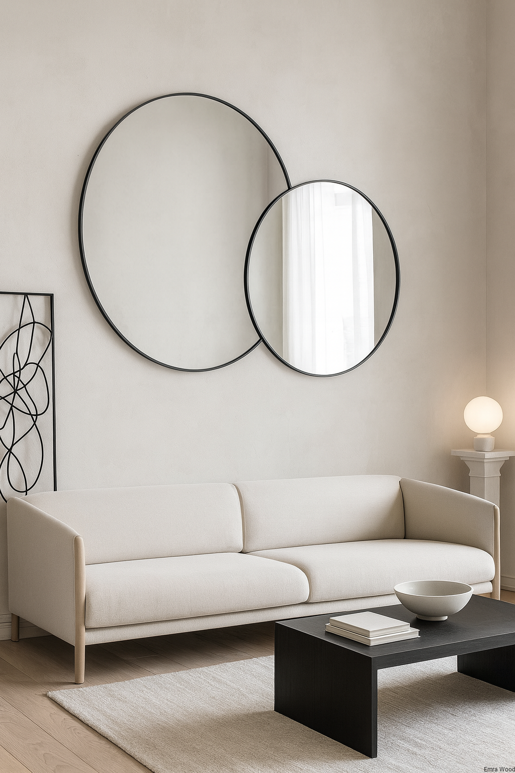 Strona główna » Nowości » Lustro AMORÈ LINE – zestaw 2 luster okrągłych w ramie MDF slim do salonu, sypialni i nowoczesnych wnętrz