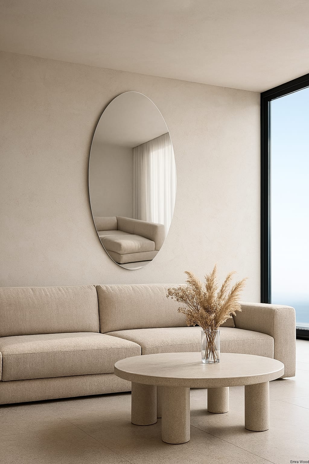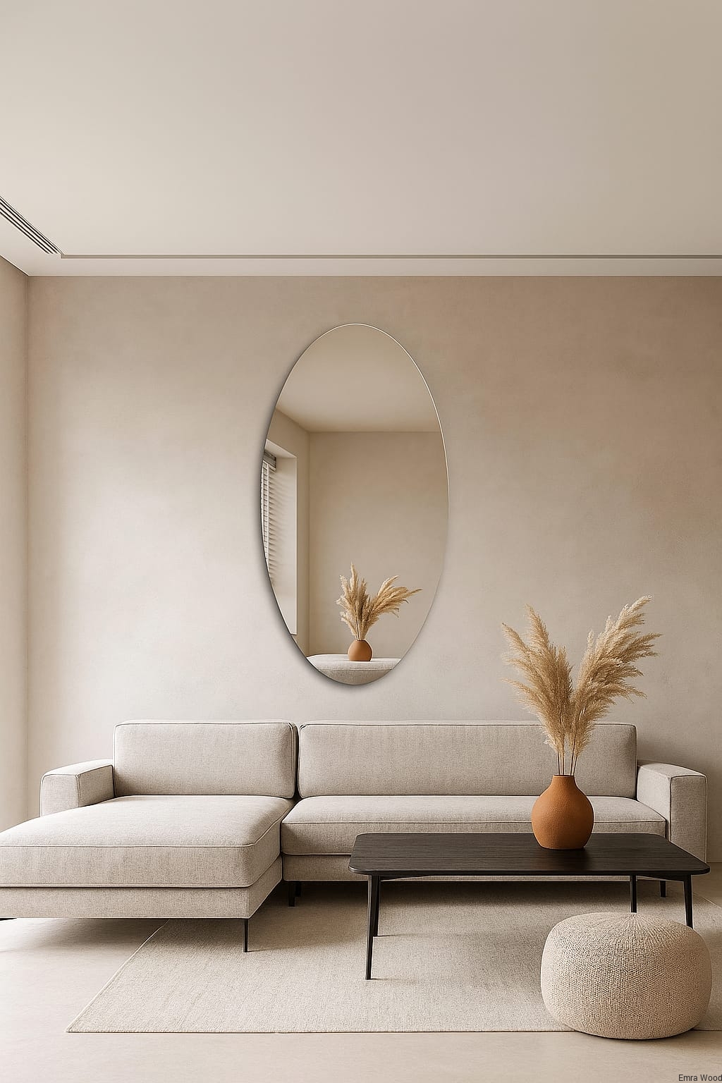 Lustro COCOON – eliptyczne lustro ścienne w stylu minimalistycznym do salonu, sypialni, łazienki i nowoczesnych wnętrz