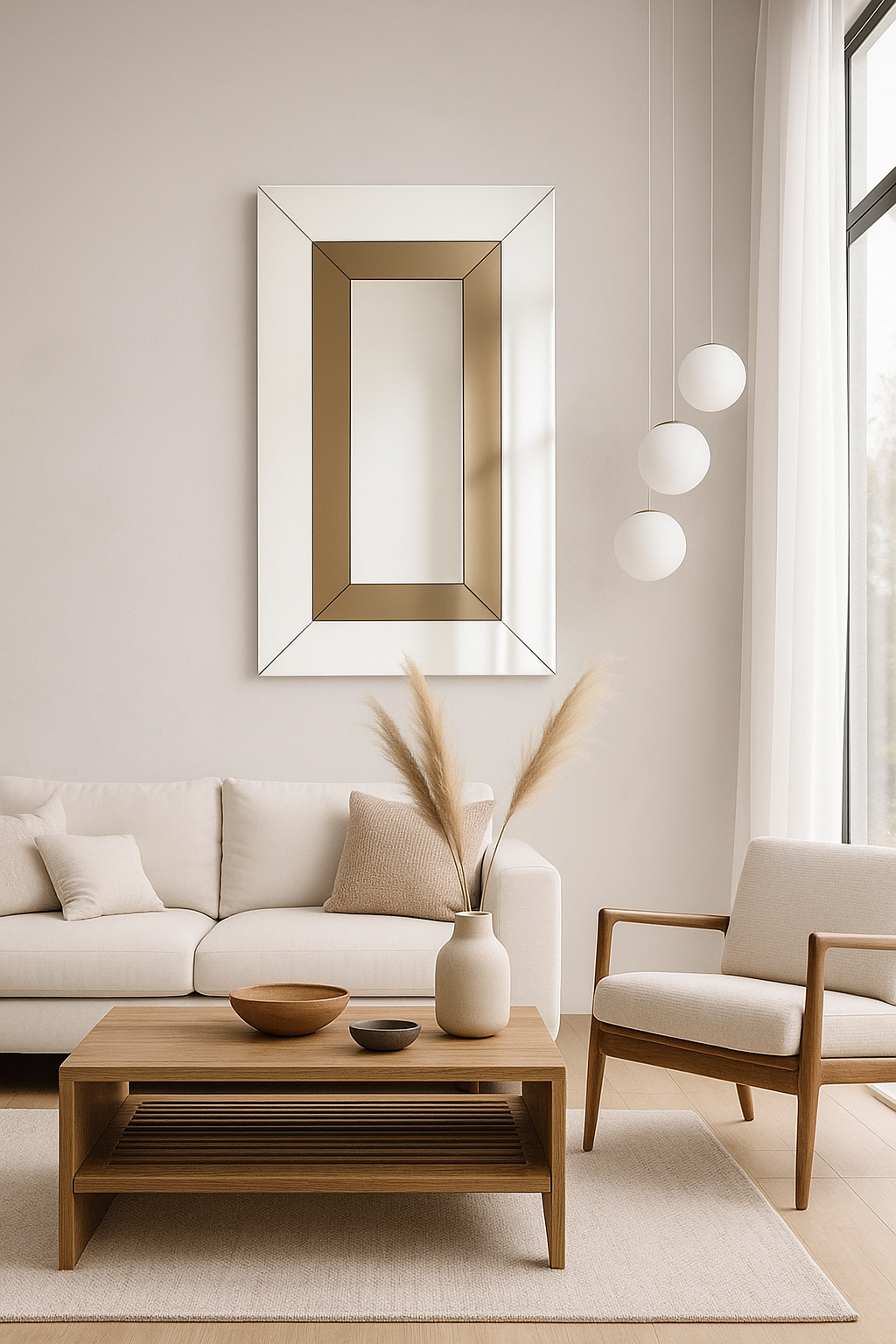 Lustro TRIO GLOW – zestaw 3 luster dekoracyjnych: złota tafla, lacobel czarny i lustro klasyczne do salonu, sypialni i nowoczesnych wnętrz