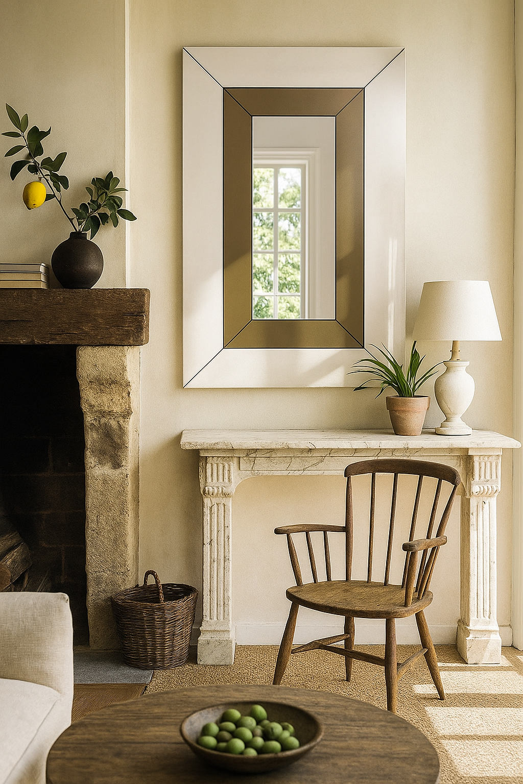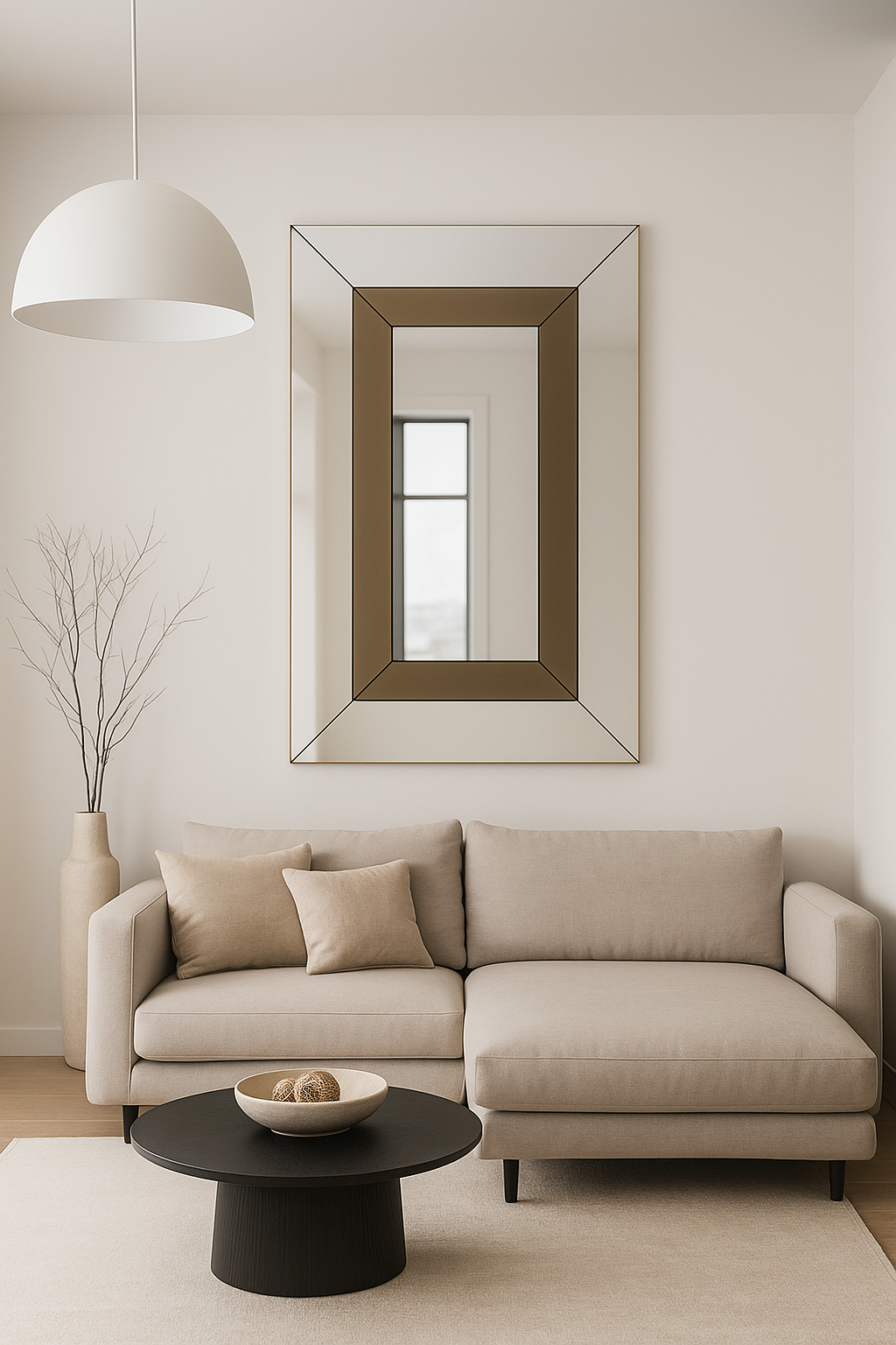 Lustro PRISMÉ – eleganckie lustro o ostrym, organicznym kształcie w pryzmatycznej formie i szlachetnej linii