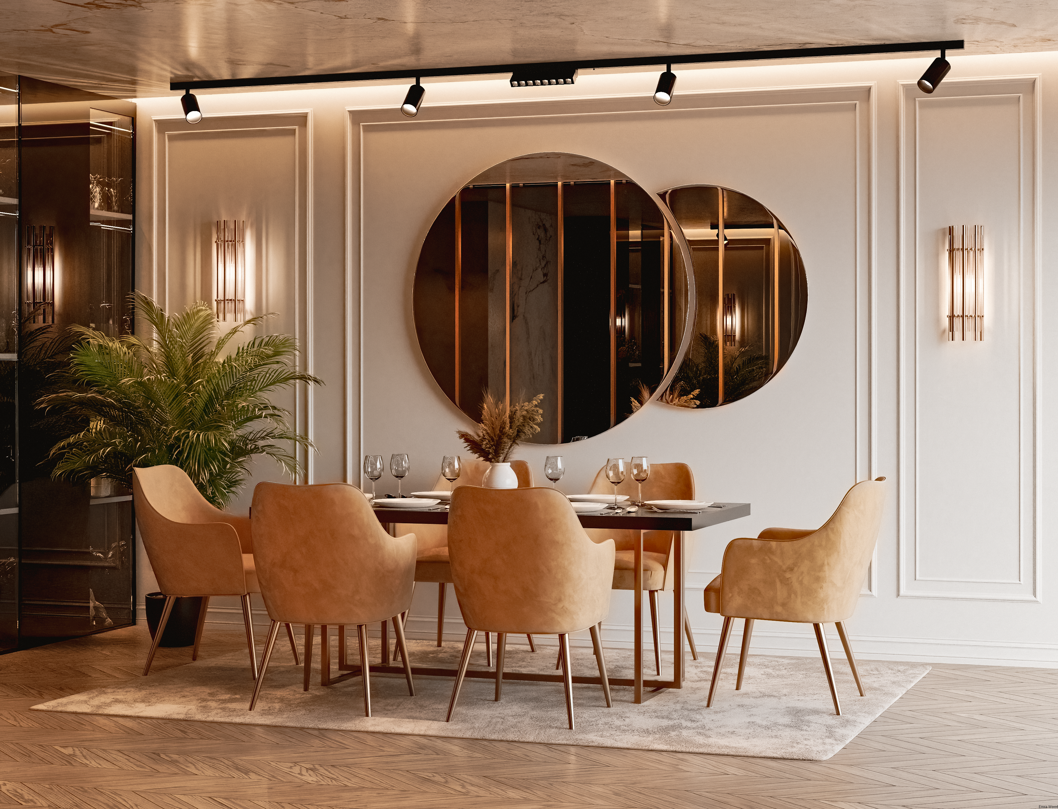 Lustro GLOW – lustro dekoracyjne glamour w eleganckim, zaokrąglonym kształcie do jadalni lub salonu