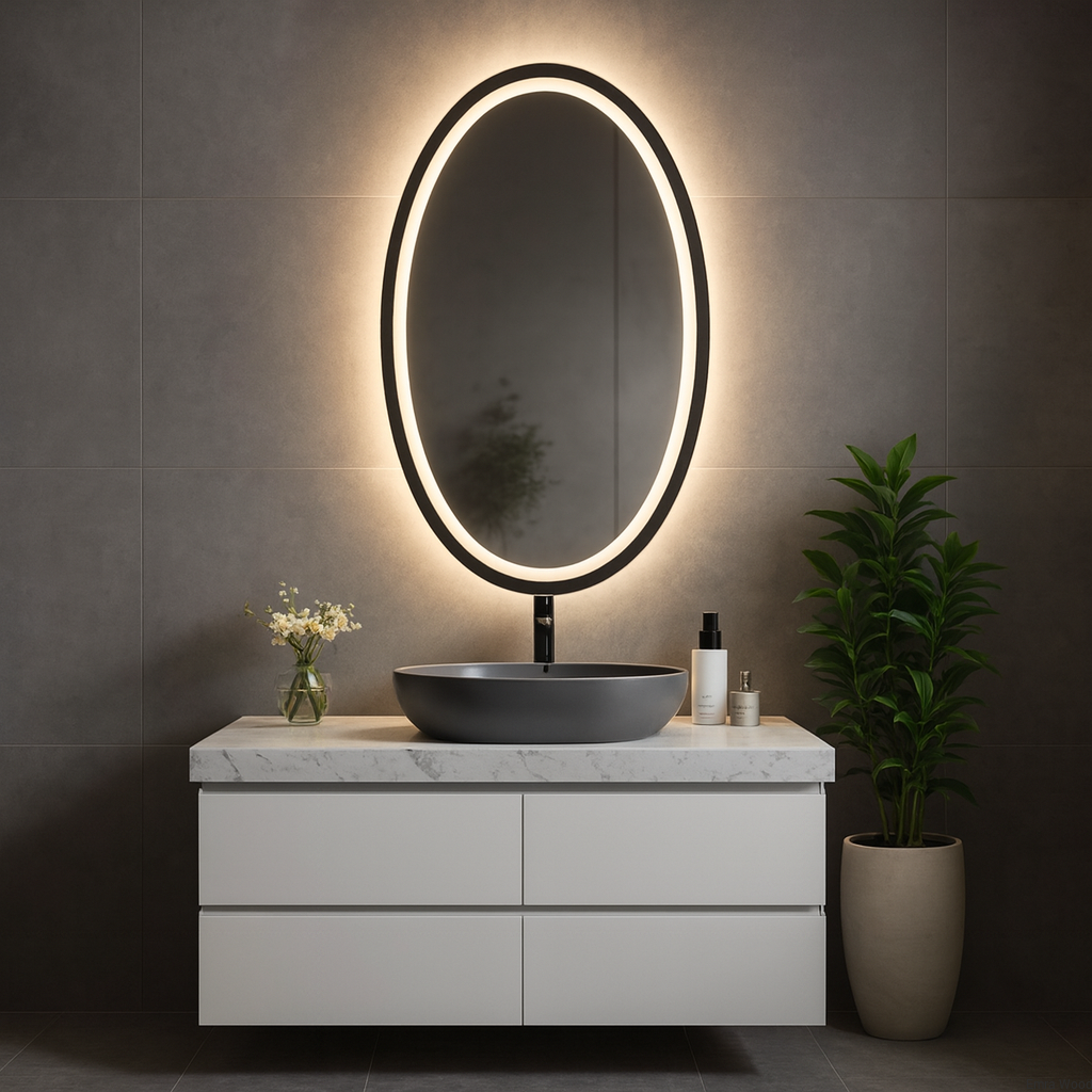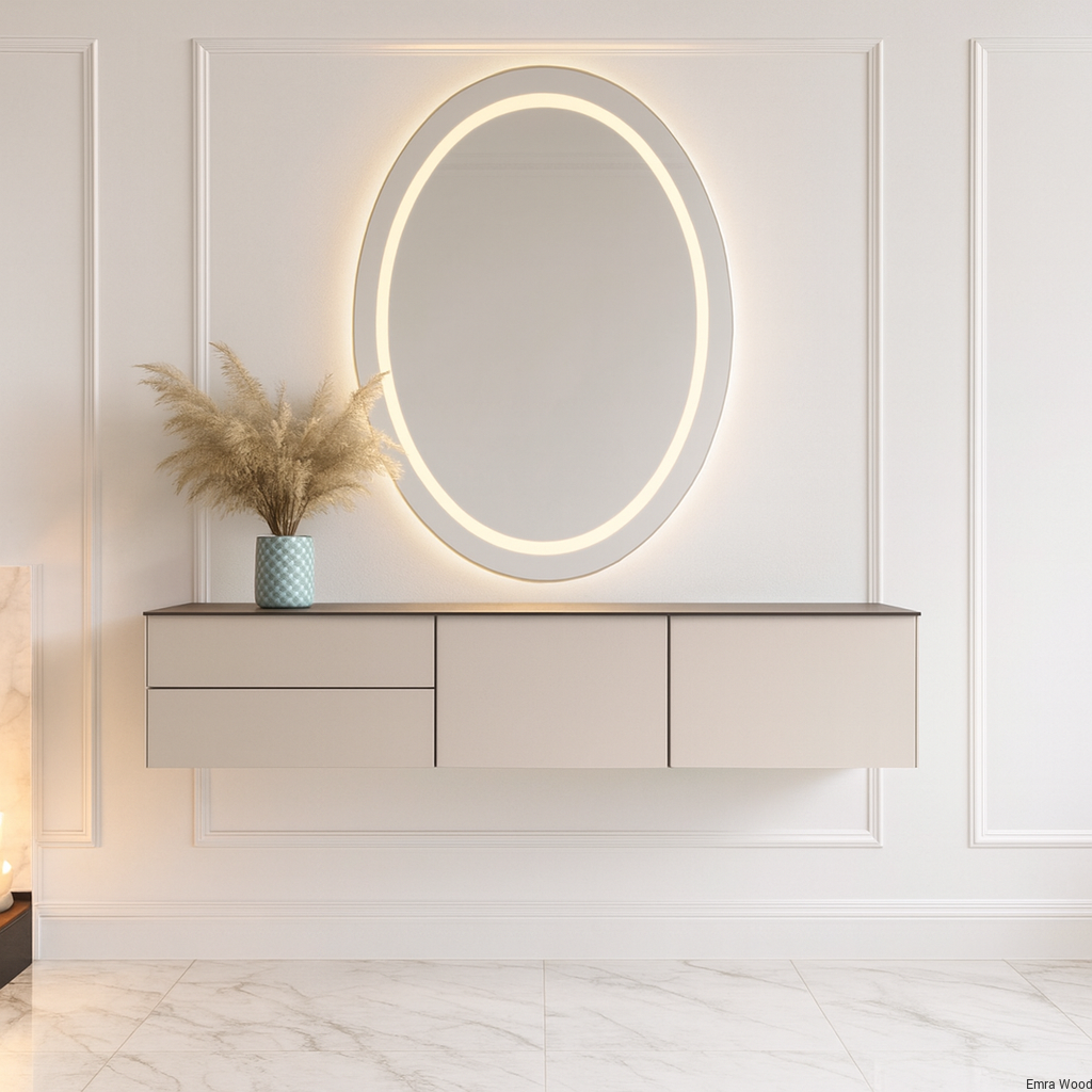 Lustro posiada mleczny piaskowany pasek LED na tafli lustra