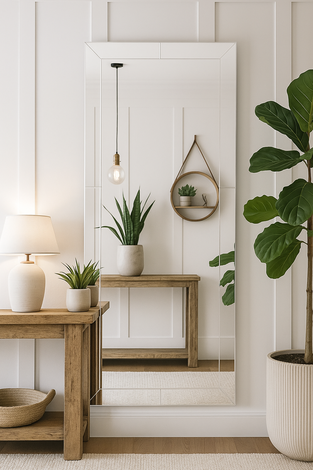 Rodzaj lustra: lustro wielopłaszczyznowe – lustro, które składa się z kilku tafli połączonych ze sobą wedle projektu. Elementy nie są zlicowane w jedną powierzchnię