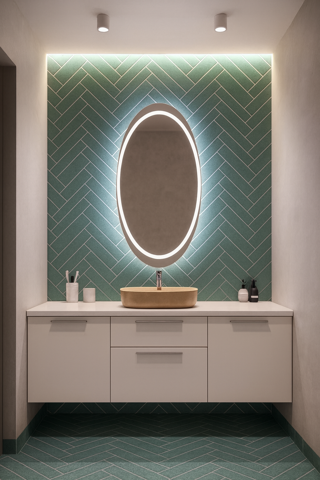 Lustro posiada mleczny piaskowany pasek LED na tafli lustra