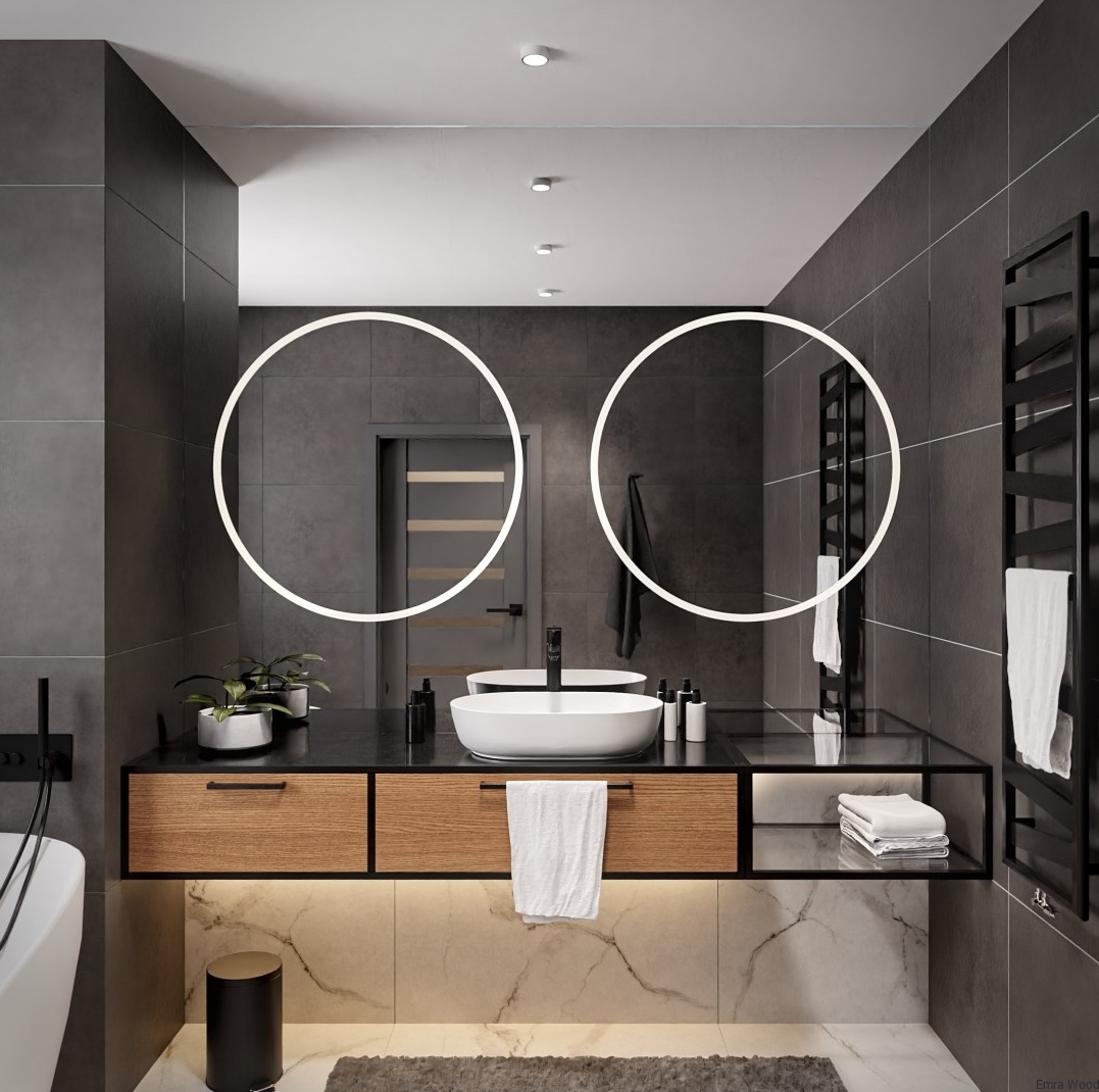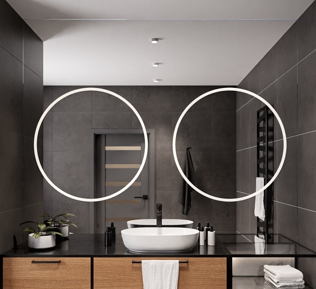 Dodatkowa taśma LED jest poprowadzona dookoła lustra tworząc łunę