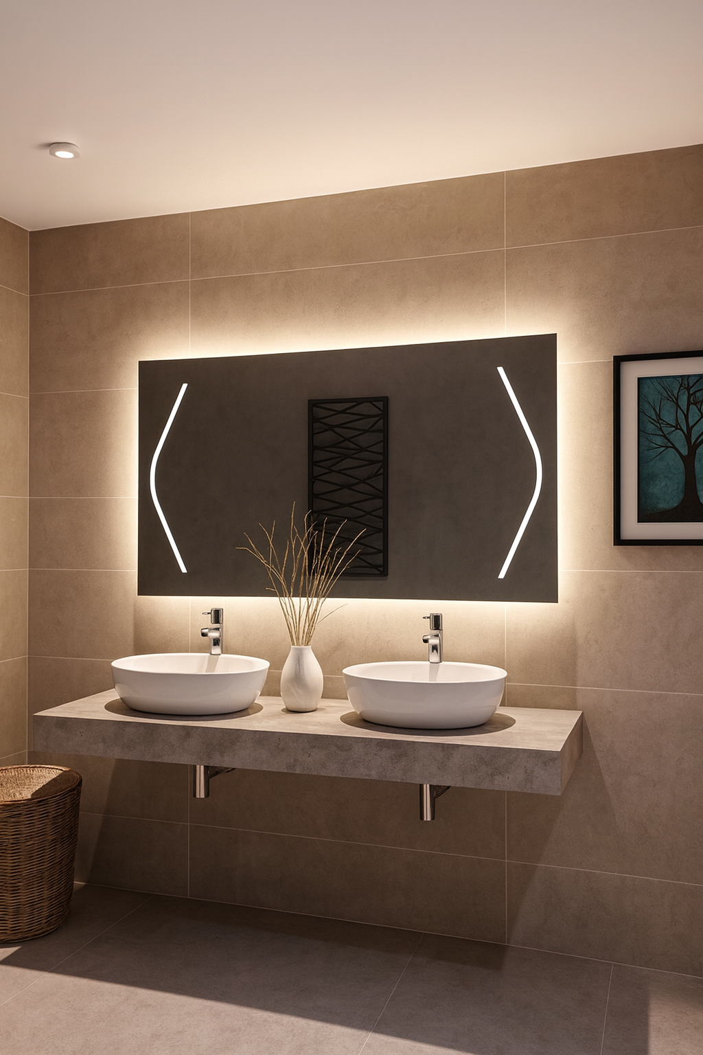 Lustro posiada mleczny piaskowany pasek LED na tafli lustra
