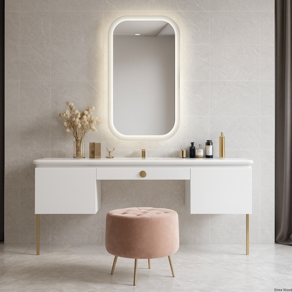 Lustro posiada mleczny piaskowany pasek LED na tafli lustra