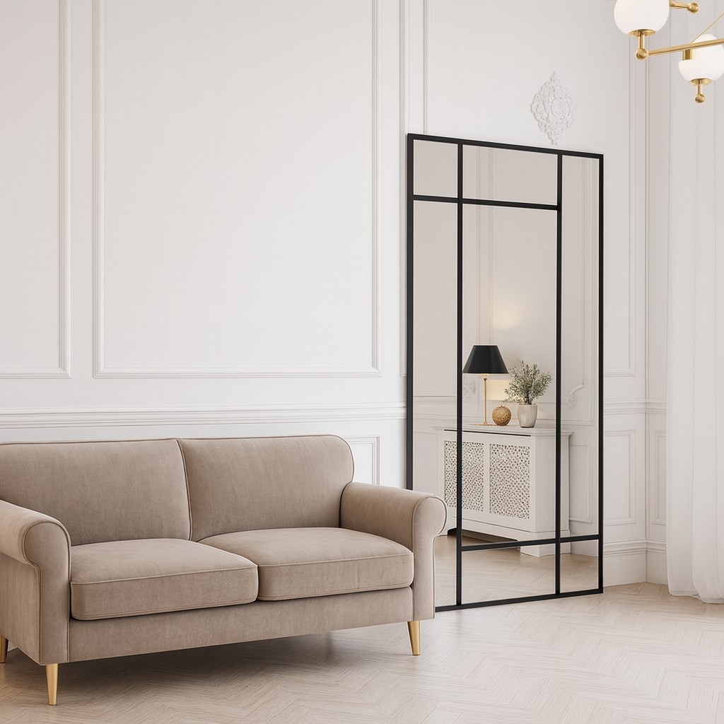Lustro ICE LOFT – loftowe lustro ze szprosami 6-kwater | industrialne duże lustro do przedpokoju, salonu, garderoby
