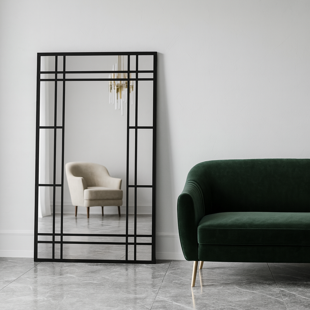 Lustro ICE LOFT – loftowe lustro ze szprosami 6-kwater | industrialne duże lustro do przedpokoju, salonu, garderoby